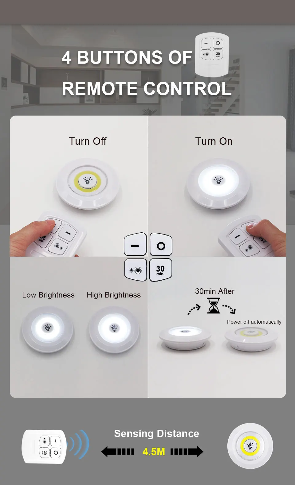 Регулируемый светодиодный ночник с дистанционным управлением, 3 Вт, для кухонного шкафа, лестницы, коридора, аварийсветильник