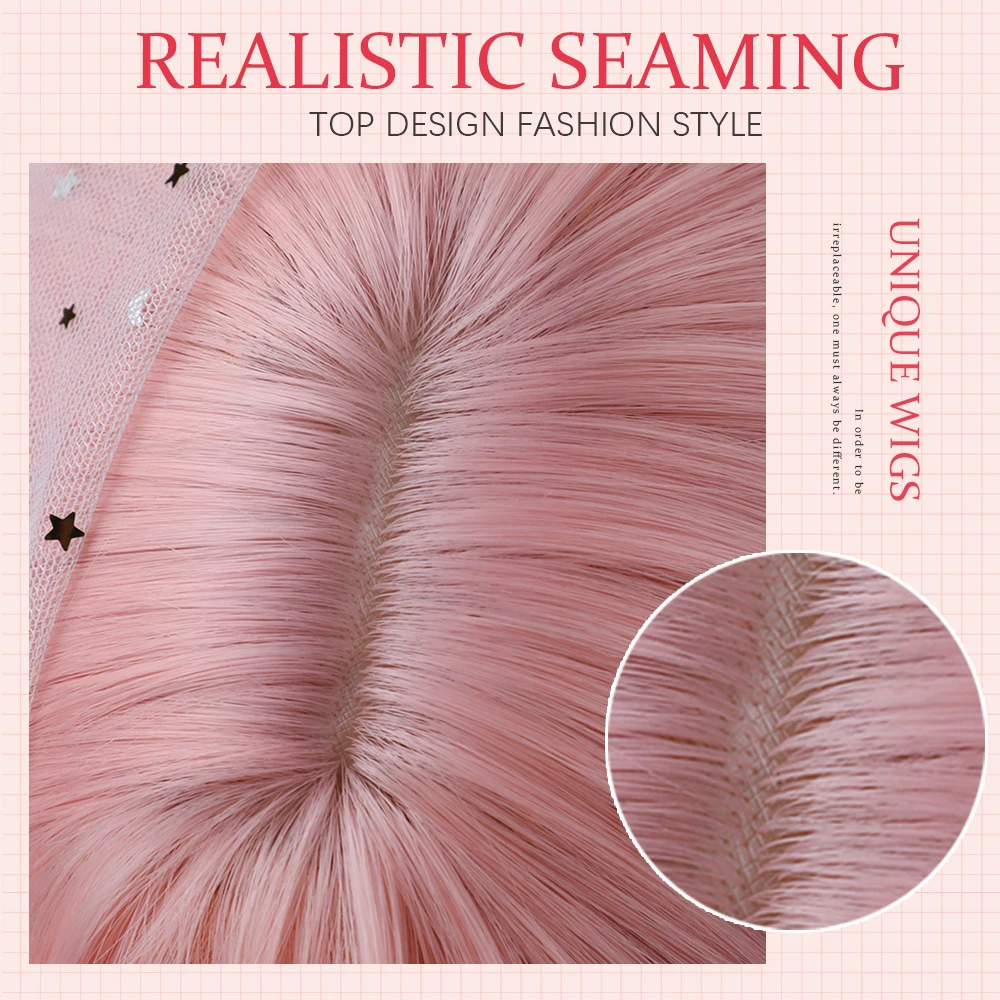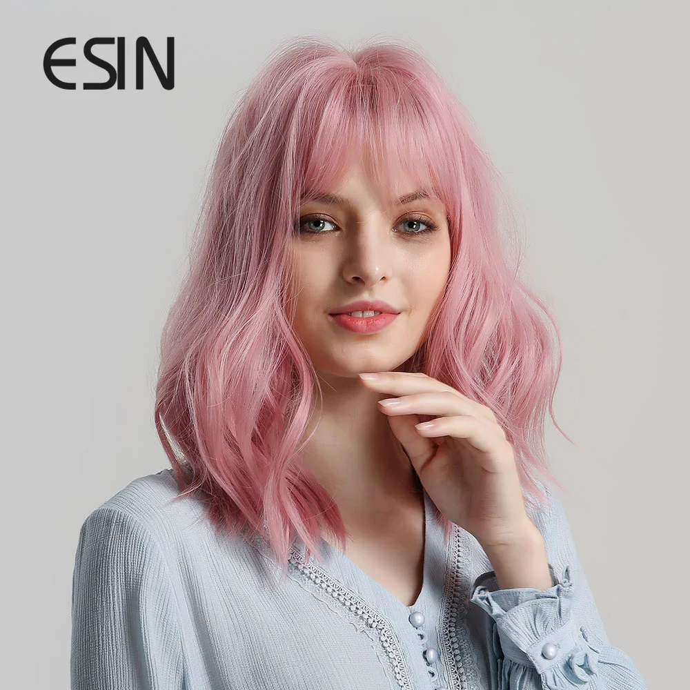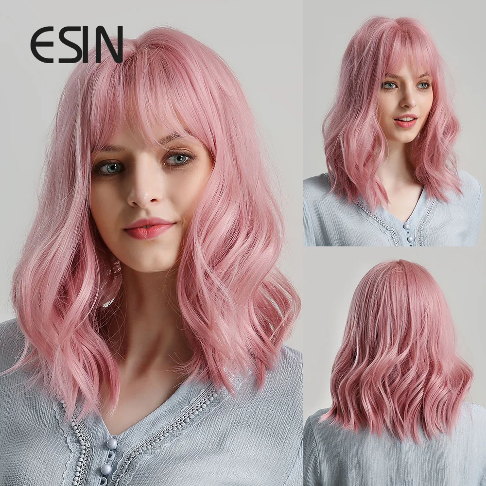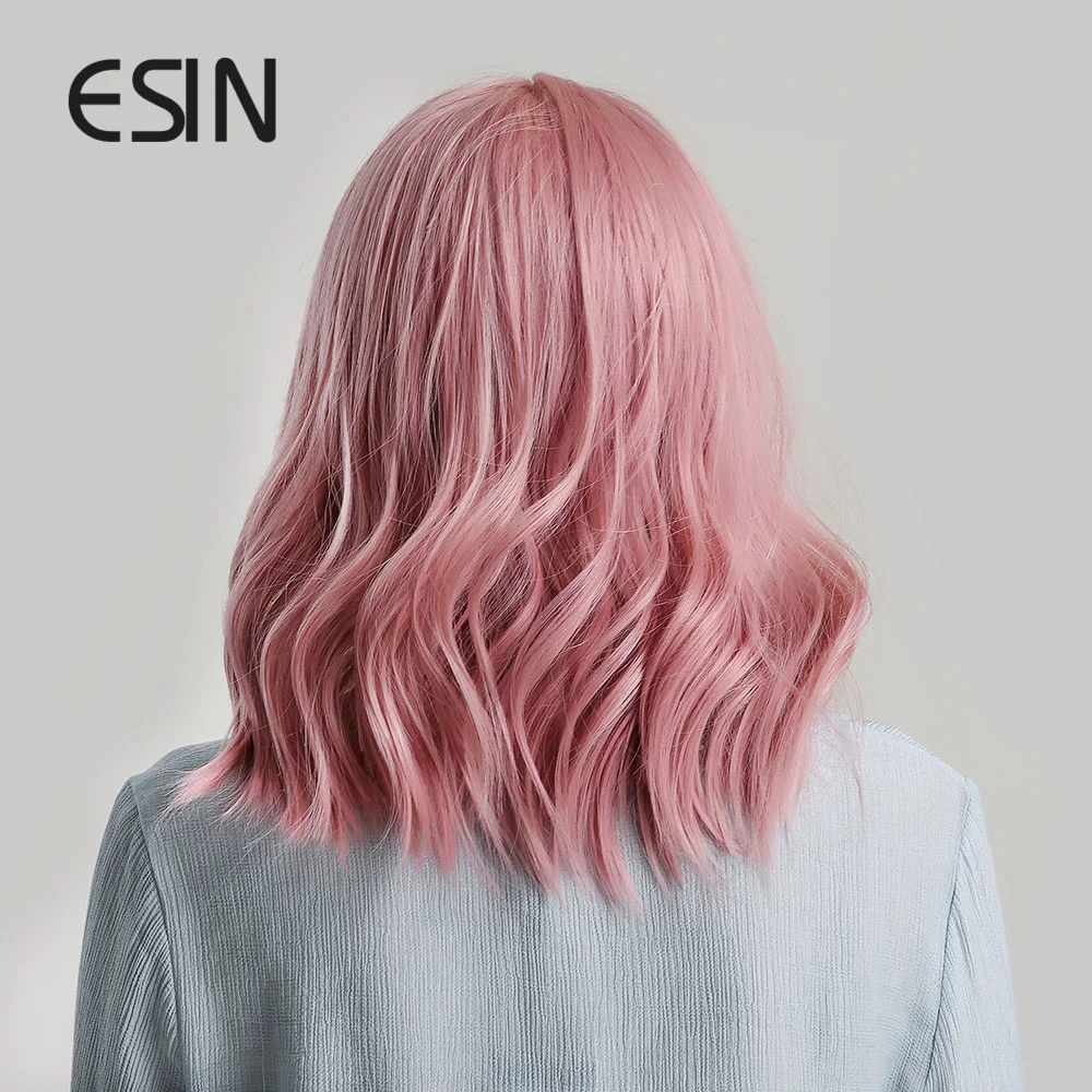 ESIN розовый, средней длины, свободный, волнистый парик с челкой, косплей, повседневные натуральные парики для женщин, термостойкие синтетические волосы