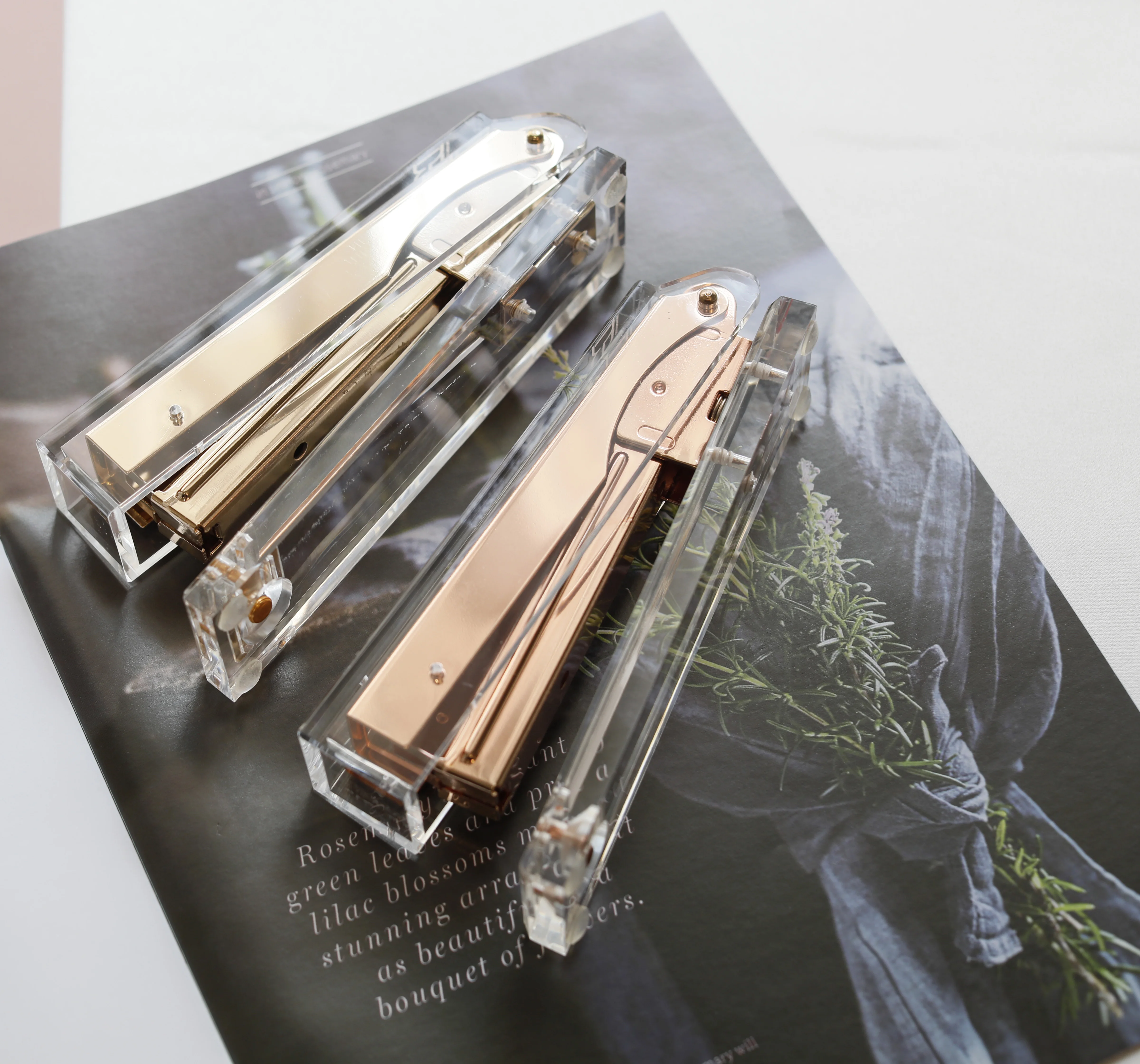 Желто-Золотойцвета розового золота акриловые элегантный степлер стола, аксессуары для рабочего стола школьные принадлежности