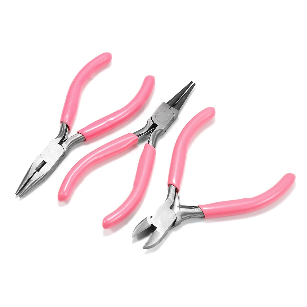 Многофункциональные Наборы инструментов для изготовления ювелирных изделий, плоскогубцы с круглым носом, боковые пинцеты, смешанные иглы, ложка розового цвета, инструменты для самостоятельного изготовления ювелирных изделий