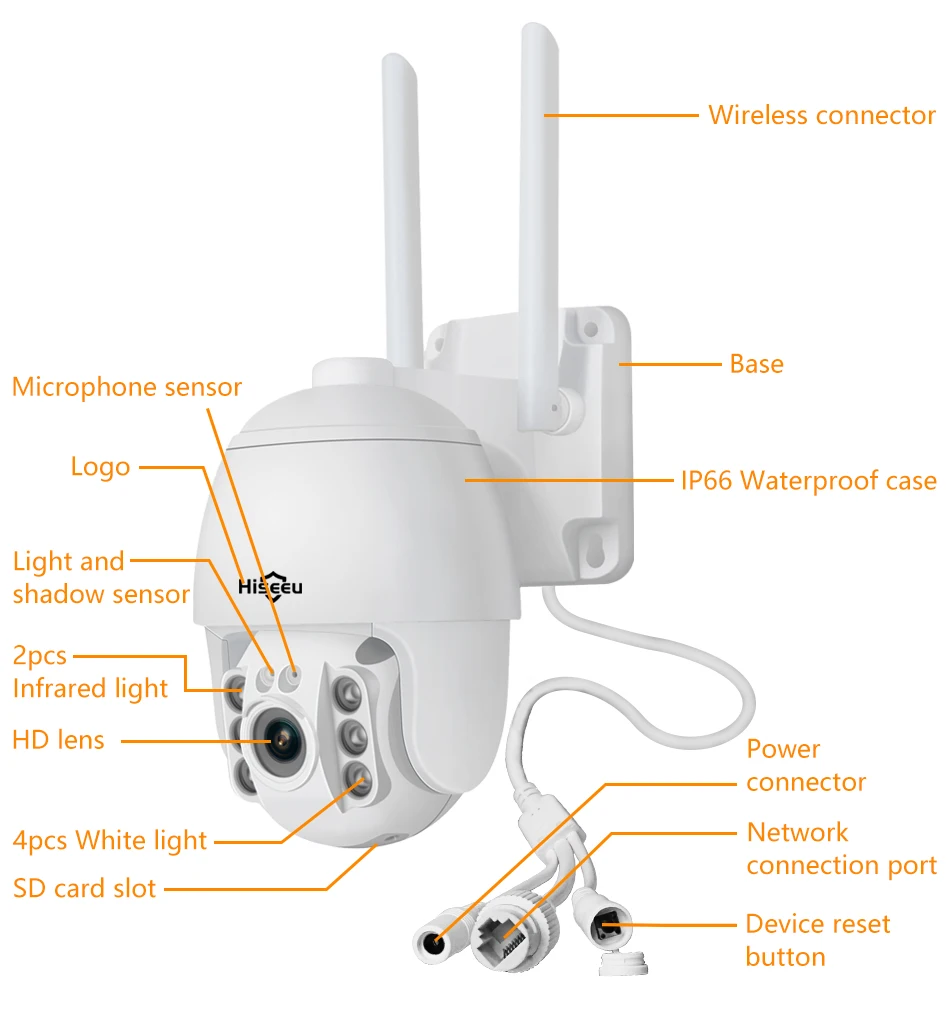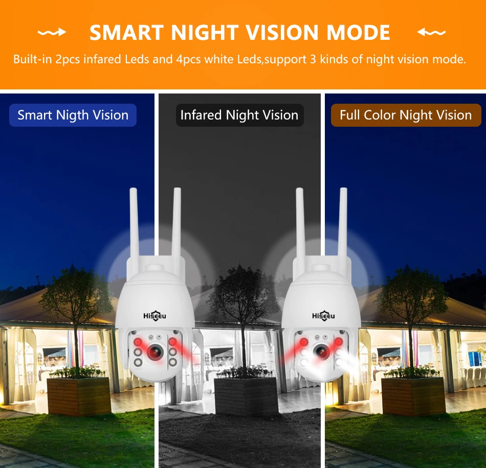 IP-камера Hiseeu 1536P, беспроводная, PTZ, Wi-Fi, 5-кратный зум, уличная камера безопасности для Hiseeu, беспроводной сетевой видеорегистратор, приложение Eseecloud