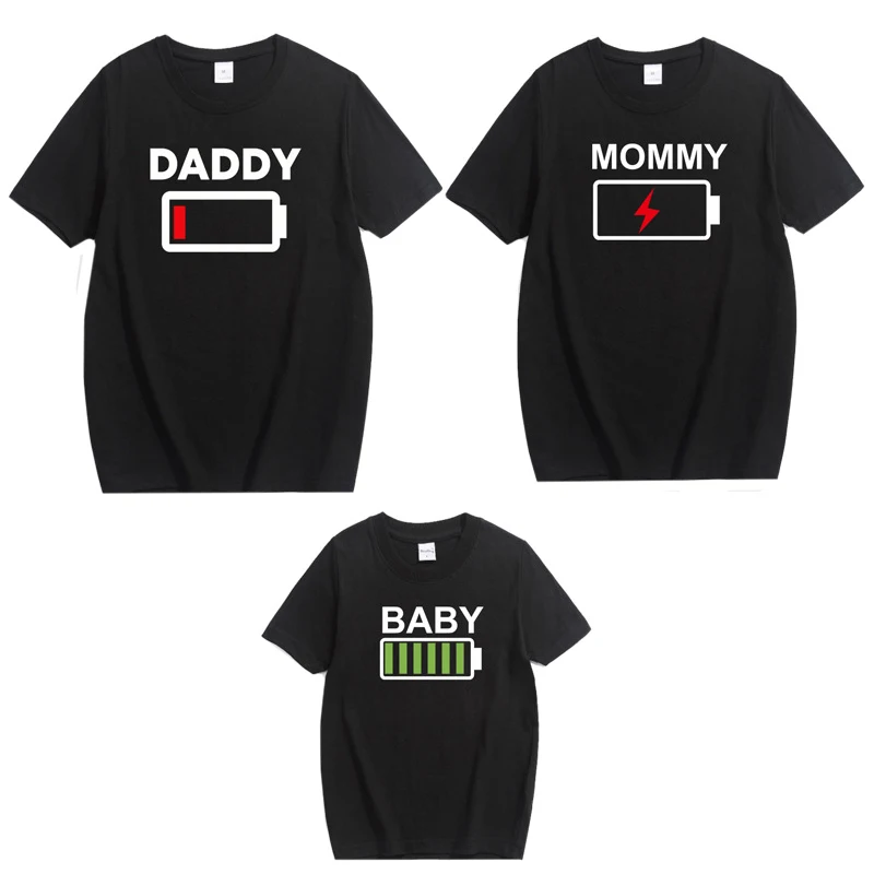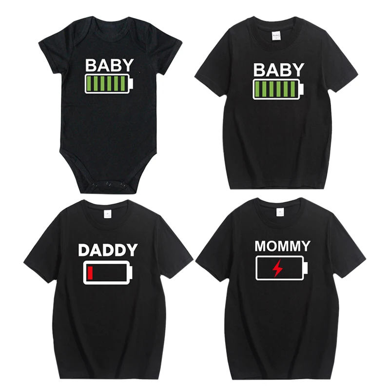 Новая Одинаковая одежда для всей семьи забавная одежда с изображением батарейки футболка для папы, мамы, мальчика и девочки одежда для малышей