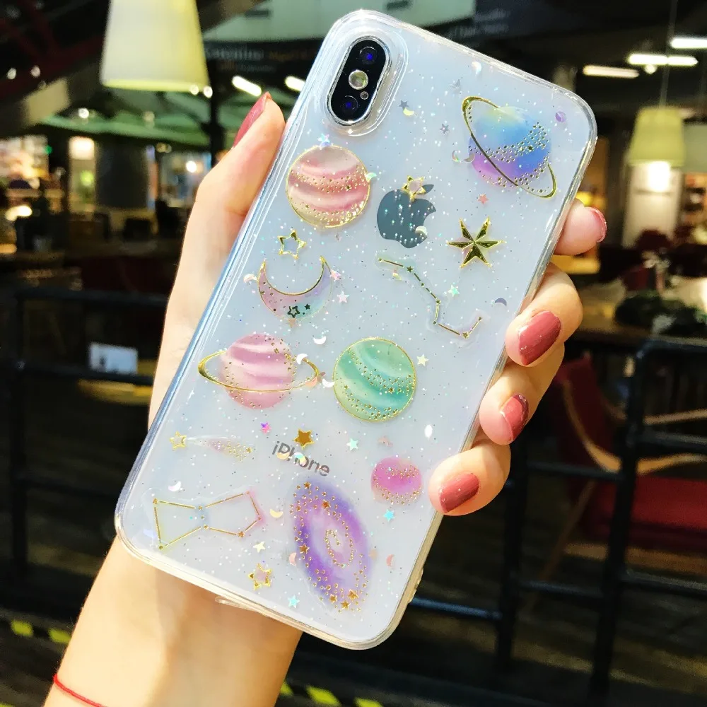 Для Samsung Galaxy A6 A8 плюс J4 J6 A9 A7 2018 чехол блеск планета ...