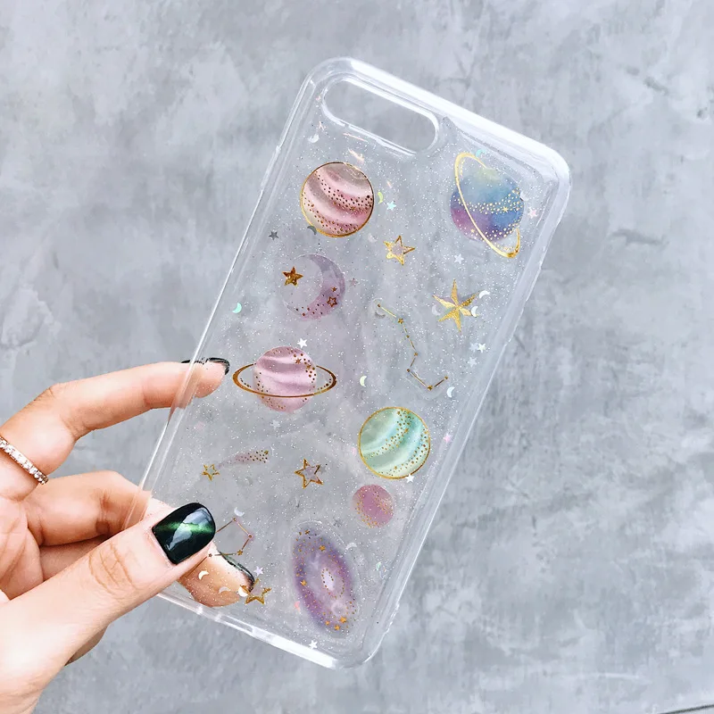 Блестящий Мягкий чехол с изображением вселенной и планеты для Samsu...