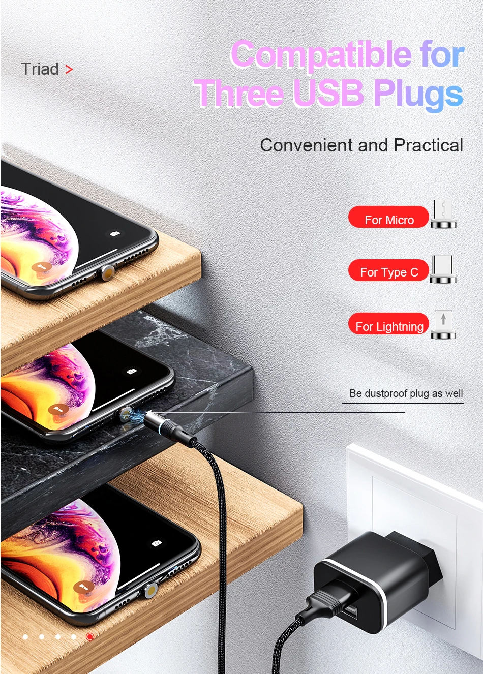 Магнитный кабель Micro USB, Type-C, Type-А для разных моделей смартфонов Samsung, iPhone, Xiaomi