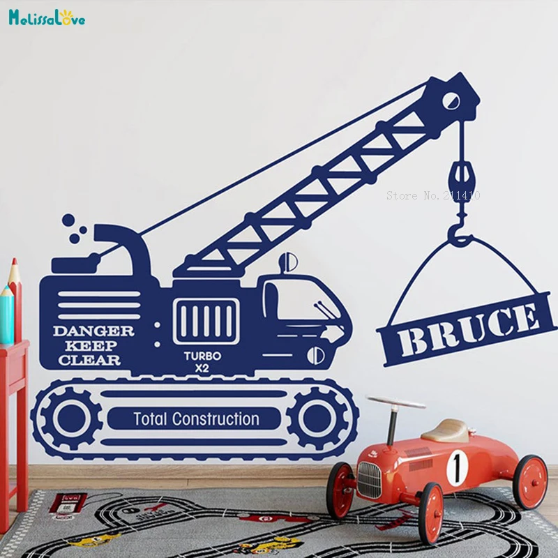 Виниловая наклейка большого размера для детей, для мальчиков, с изображением строительного крана, грузовика, бульдозера, YT2598