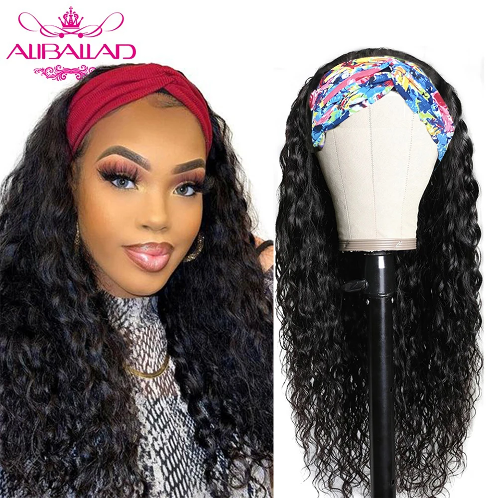 Парик с головной повязкой человеческие волосы волна воды бразильский Реми воды вьющиеся оголовьем половина парики для чернокожих Для женщин 150% 30-36 дюймов