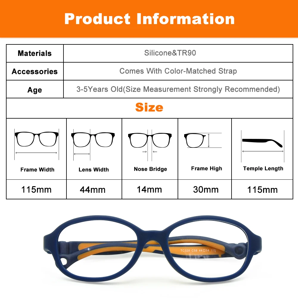Детская оправа для оптических очков, размер 4414 с ремешком, без винта, цельная детская Гибкая оправа, фиксатор шнура