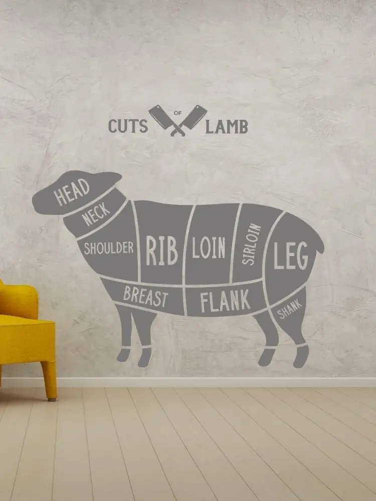 Наклейка на стену с изображением мяса ягненка, наклейка с изображением животных, наклейка с изображением мяса для кухни, ресторана, настенное украшение A00851