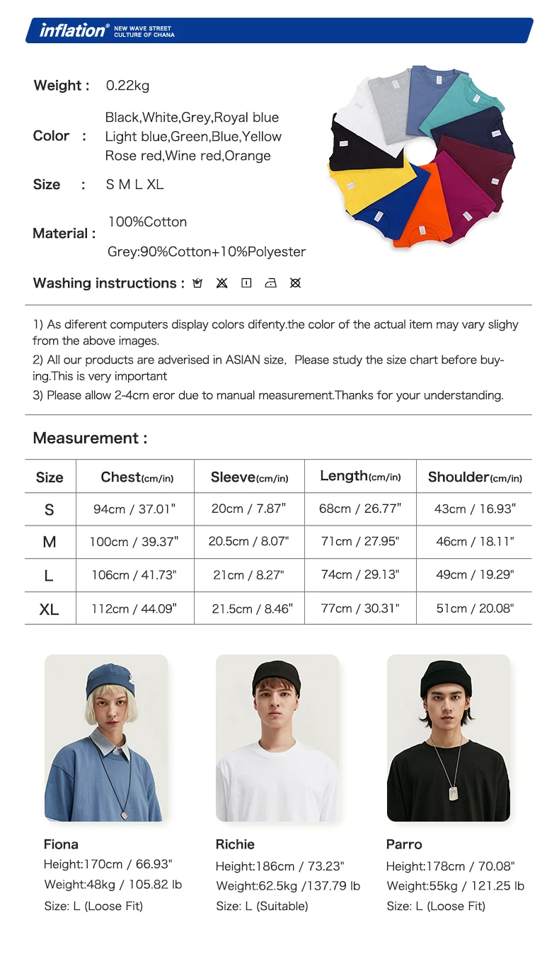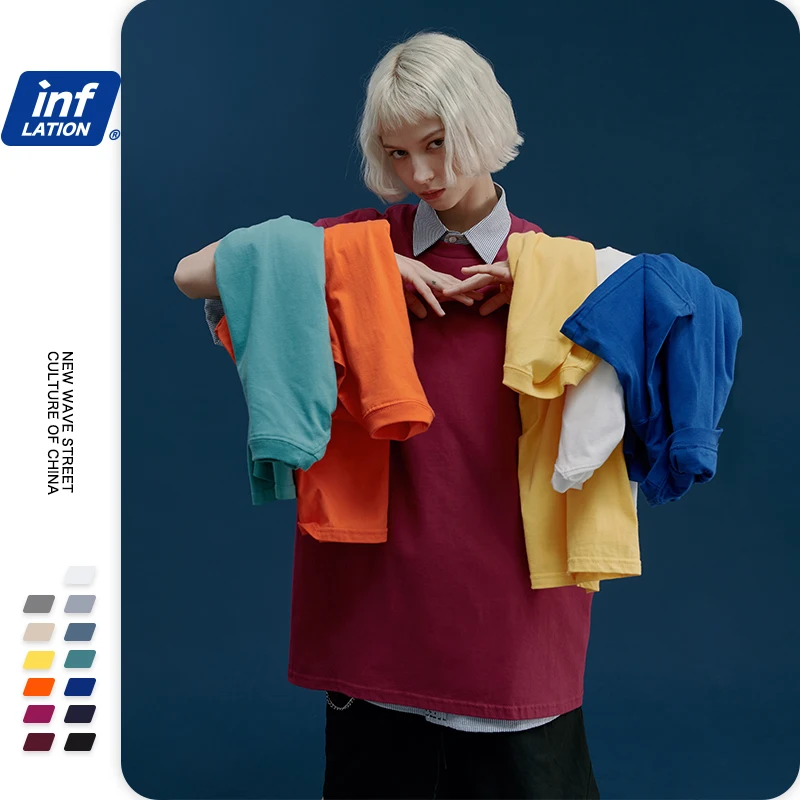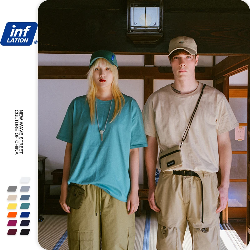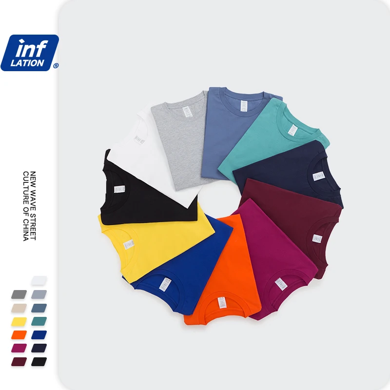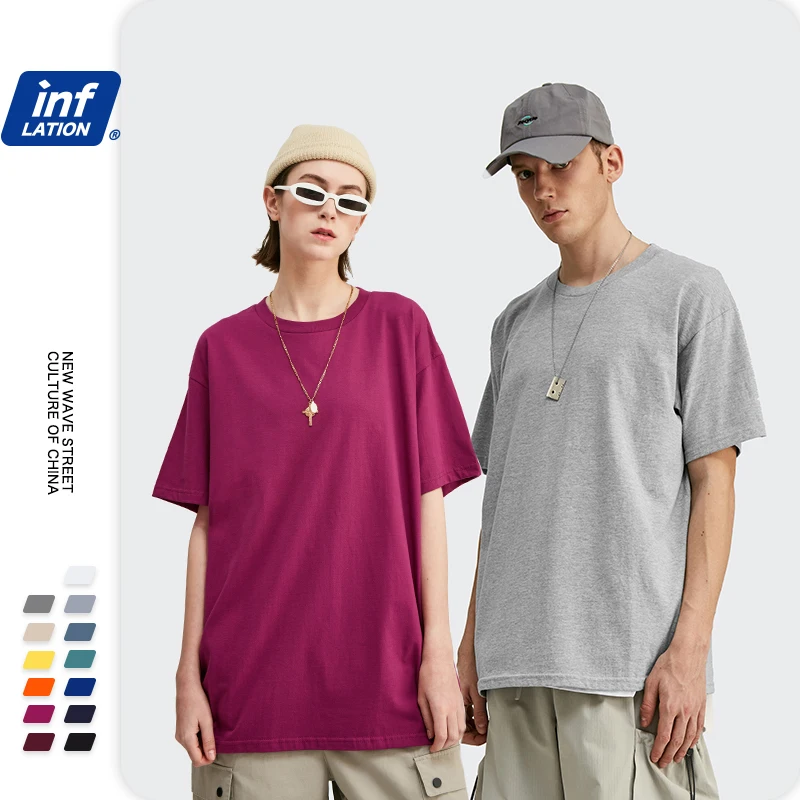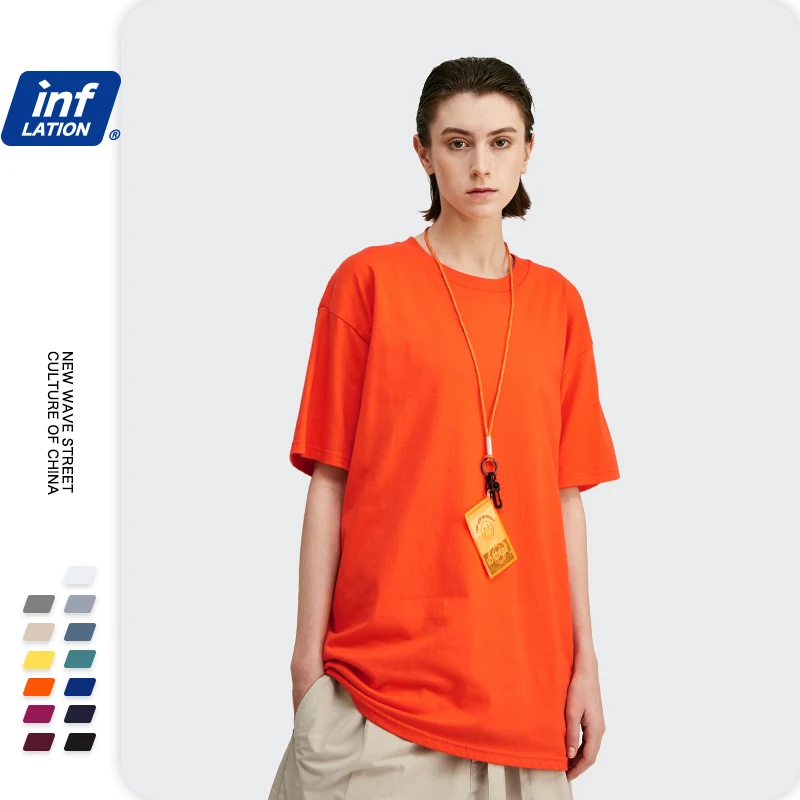 INFLATION 2022 летняя новая мужская футболка из 100% хлопка однотонная Повседневная футболка унисекс Базовая свободная Мужская футболка с круглым вырезом 1000S20