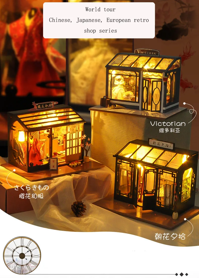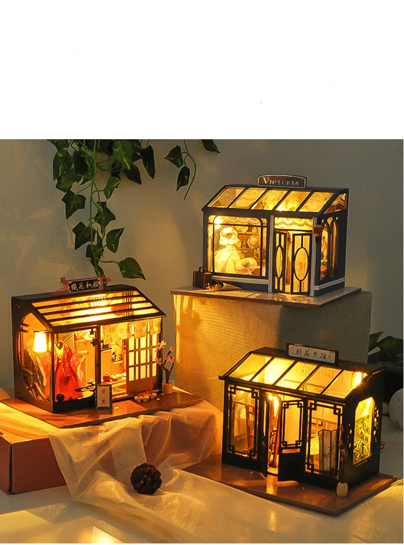 DIY кукольный домик деревянные кукольные домики миниатюрный кукольный домик мебельный набор со светодиодными игрушками для детей Рождественский подарок Z007 Z008 Z009