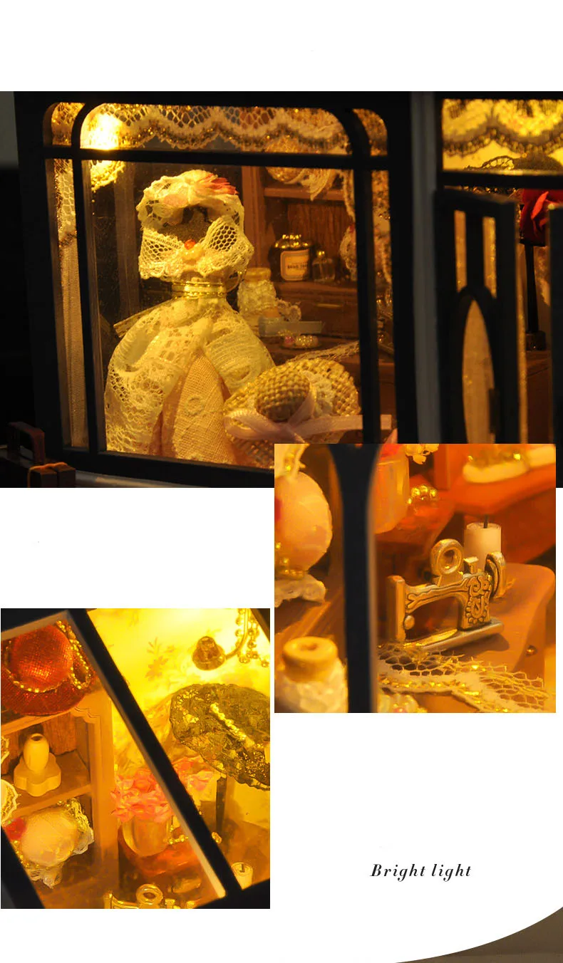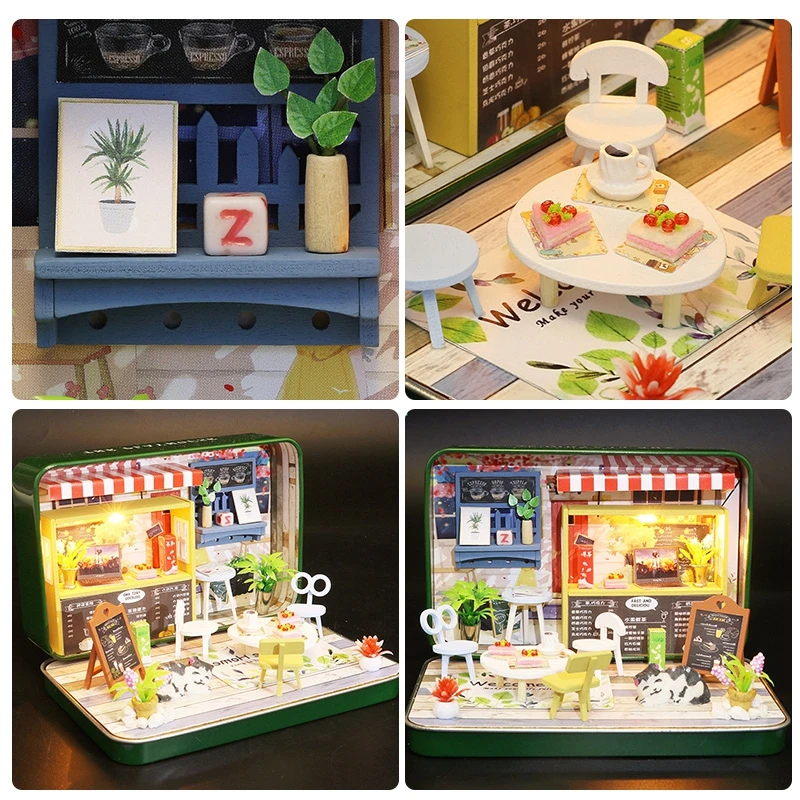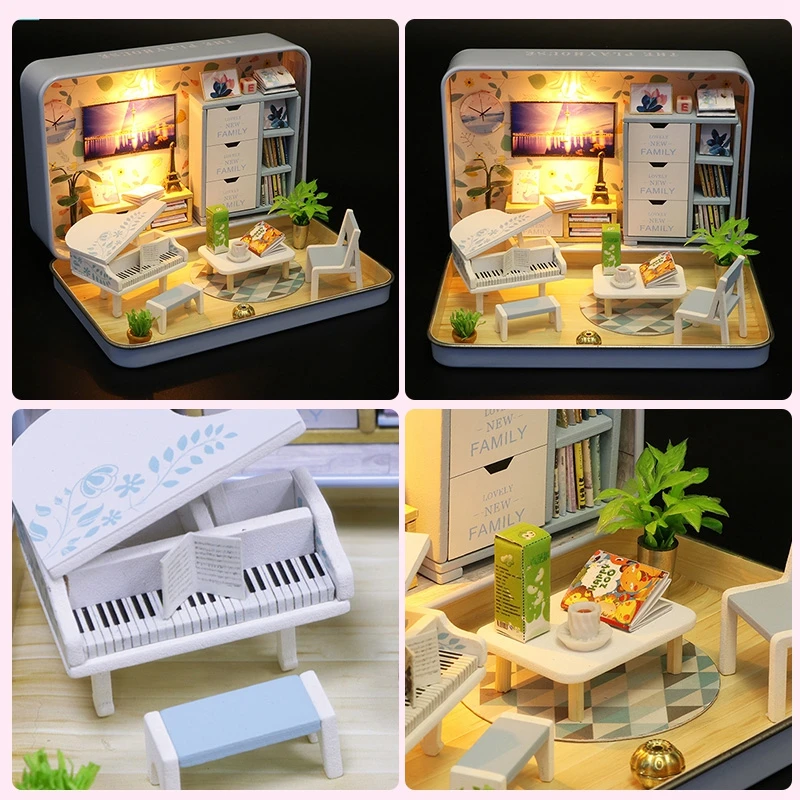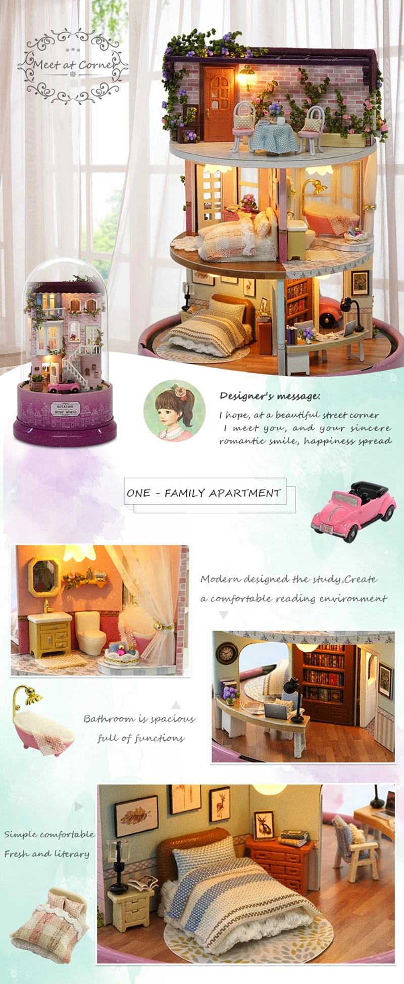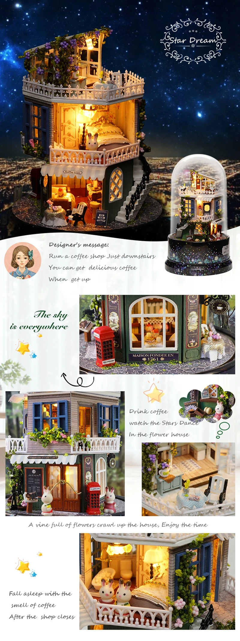 Вся мебель такая же, как на изображении Красивая упаковка подарочная коробка Мини Деревянный кукольный домик Вся мебель такая же, как на изображении Они поставляются с кусочками, их нужно собрать Готовые Размеры: 21x12.5x14.5cm Вес: 0,6 кг Материал: Дерево, ткань, бумага, смола, пластик, материал Обратите внимание: 1. Не включает инструменты, пылезащитный чехол, клей/аккумулятор/музыкальную коробку. 2. Инструкции на английском языке включают или получают по электронной почте. 3. Возраст: подходит для детей старше 8 лет