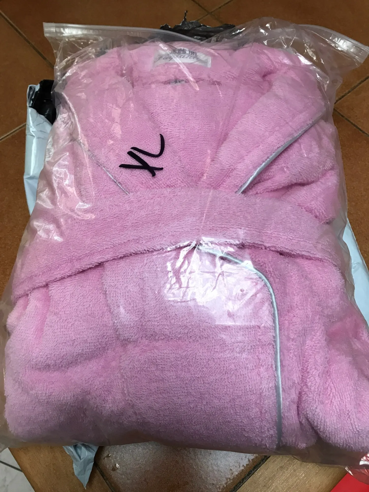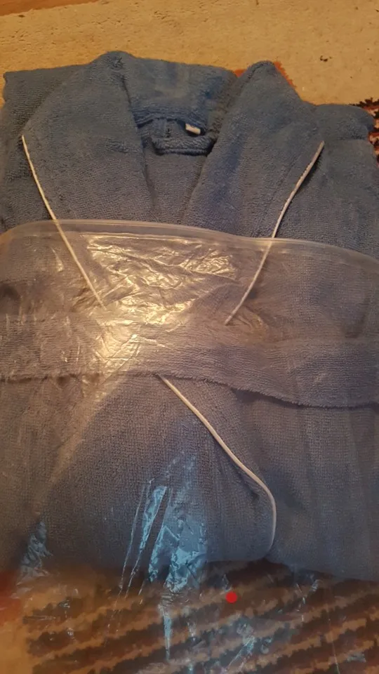 Это прекрасный банный халат из 100% хлопка. Ткань красивая, достаточно пышная (на моем фото два сложения, но в любом случае...), с двумя передними карманами. Я получил Размер XL (мой рост 1,70 см), а длина-от середины икры. Халат хорошо упакован в сумку на молнии. Доставка была на удивление быстрой-всего 2 недели. Я очень доволен своей покупкой. Я рекомендую продавцу и буду покупать у него снова. Спасибо, продавец.