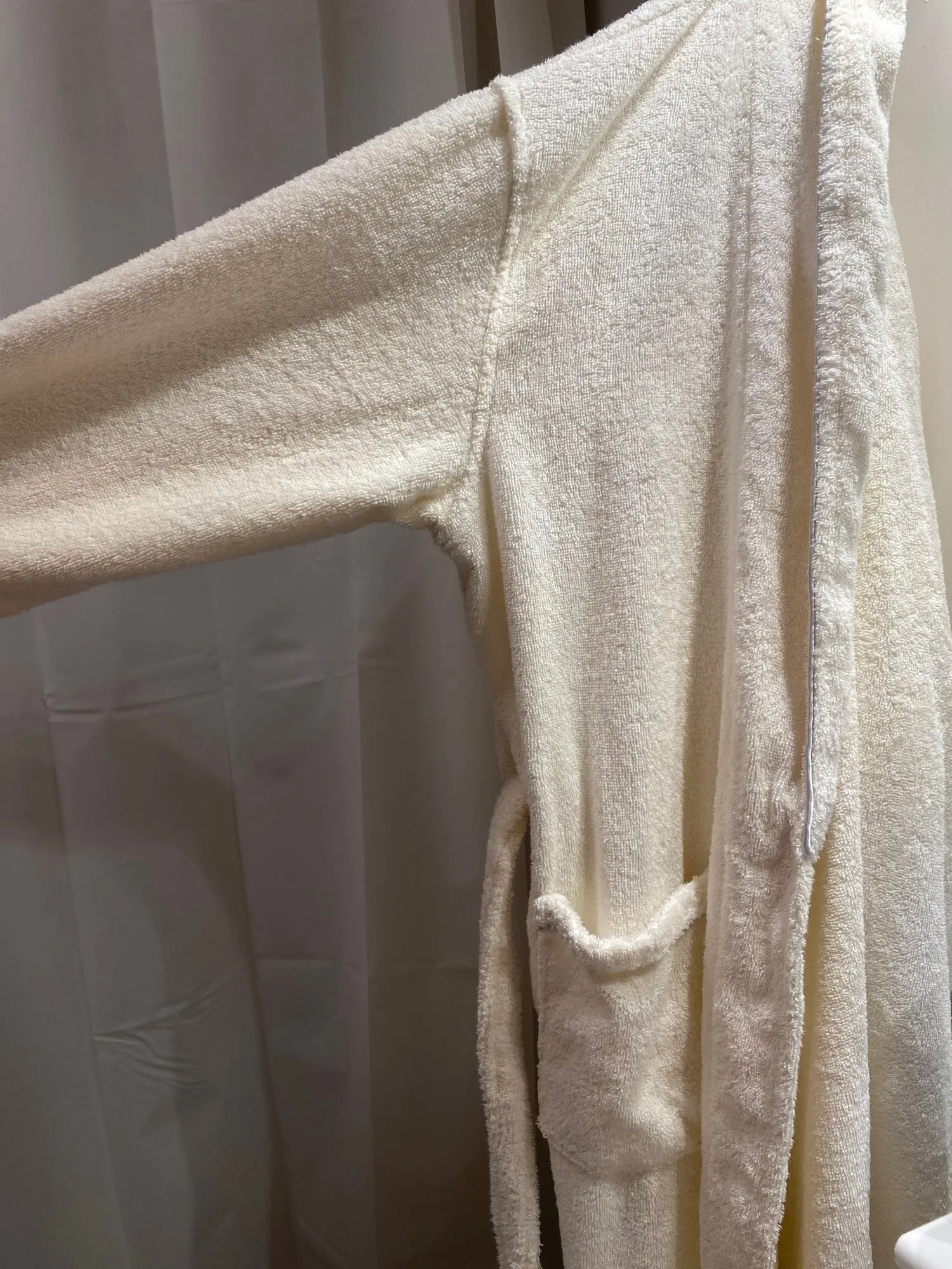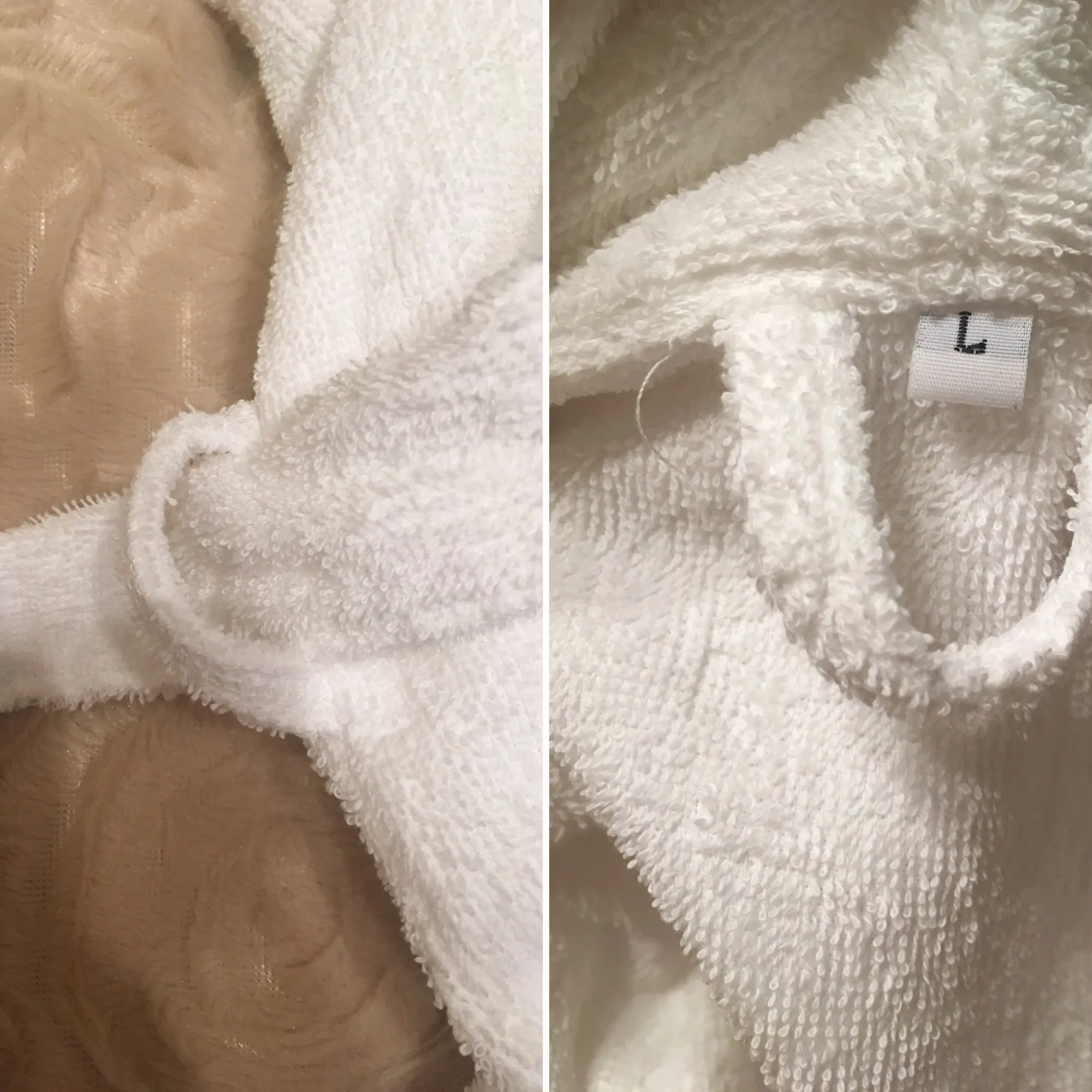 качество халата на троечку. мы обнаружили 3 зацепа. не совсем соответствует описанию.