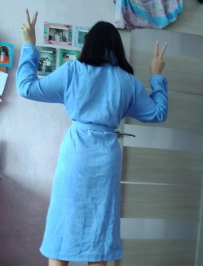 Очень понравился махровый халат, на параметры 85-75-95 рост 164, размер L, самый нормальный, меньше не надо, одна из моих лучших покупок на алиэкспресс!!! ❤️