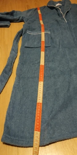 неплохой халат за свою цену, хлопок, к телу приятный, брала тут ещё белый, он больше понравился, у этого пошив хуже, нитки торчат и на 180 рукава короткие, а в остальном вполне. Могу рекомендовать, на xl мужской размер подошёл по объемам