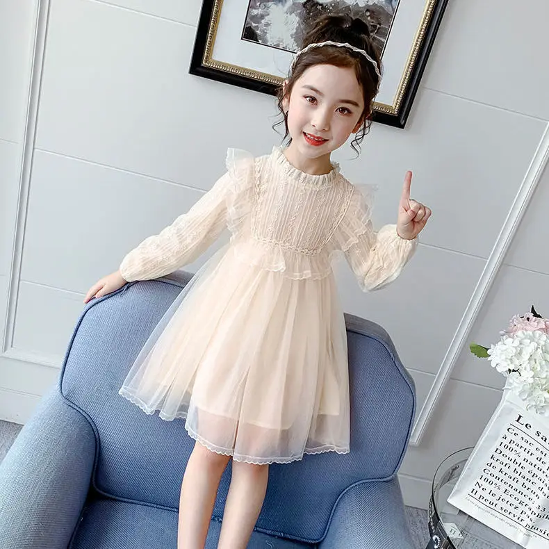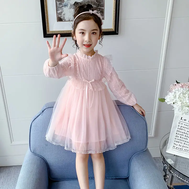 2021 Новинка для маленьких девочек; Милое кружевное платье с большим бантом, платье принцессы для девочек детская одежда для девочек; Весна-Осень; Вечерние платье для девочек на день рождения Детская одежда Vestidos; Одежда для детей