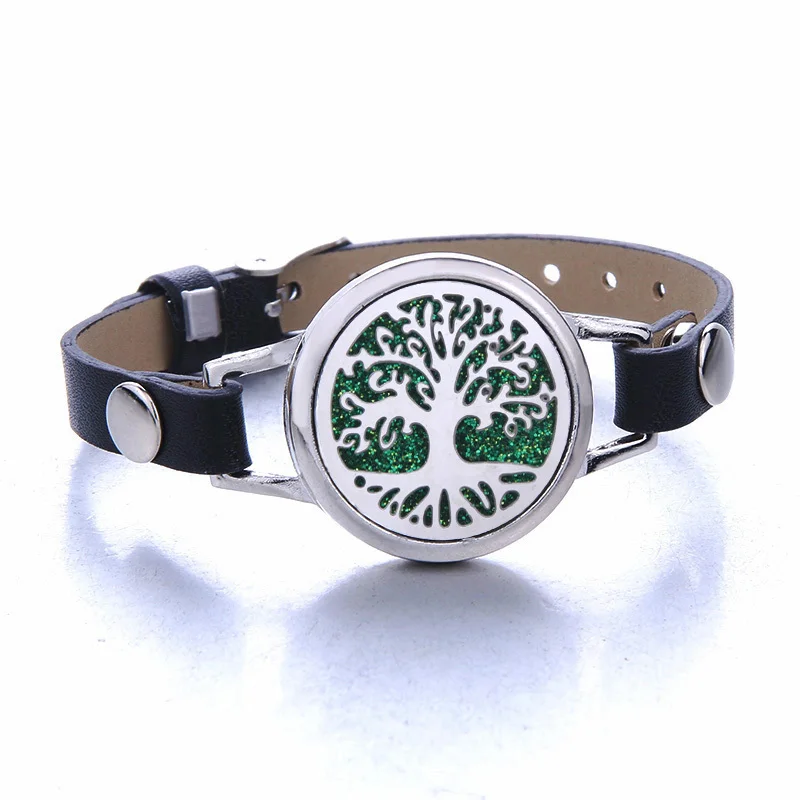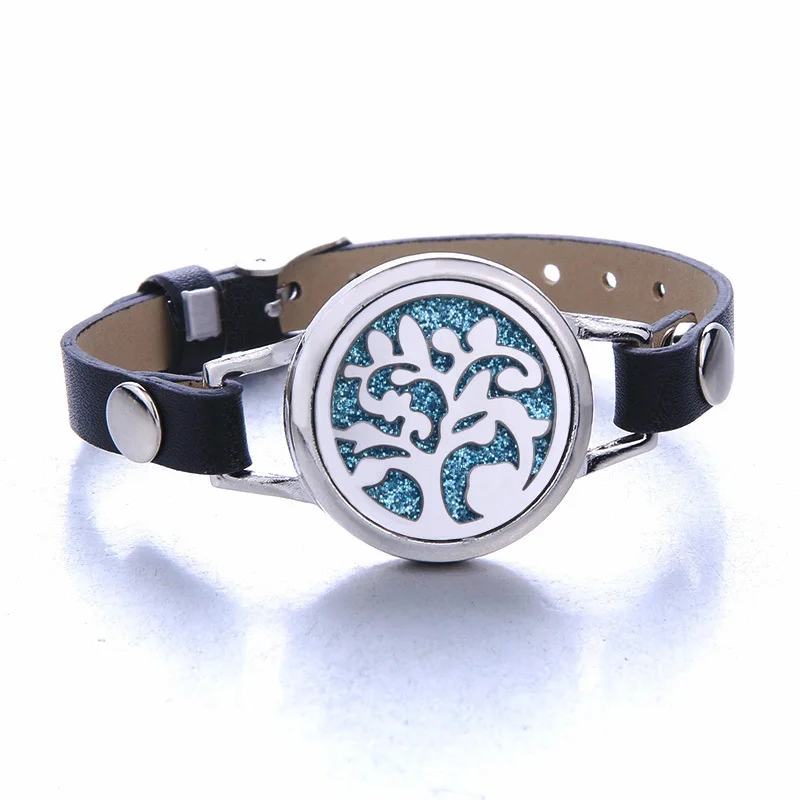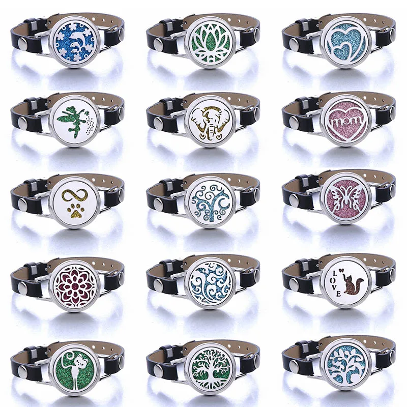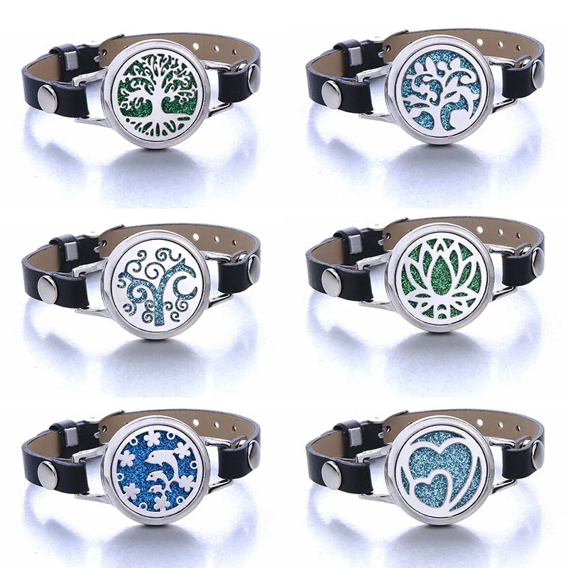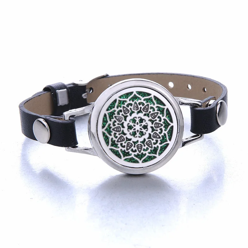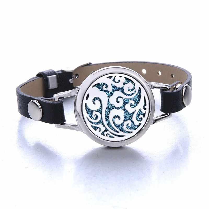 Женский браслет из натуральной кожи с ароматическим диффузором, ароматерапия из нержавеющей стали, медальоны, диффузор эфирного масла