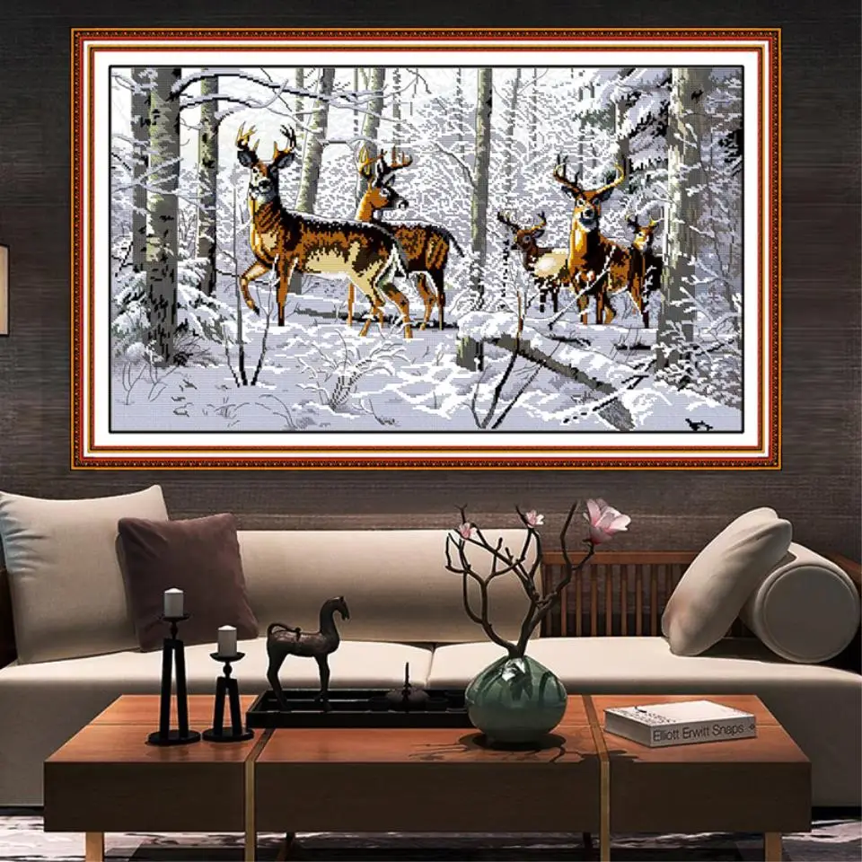 Набор для вышивки крестом с изображением антилопы на снегу, 14ct, 11ct