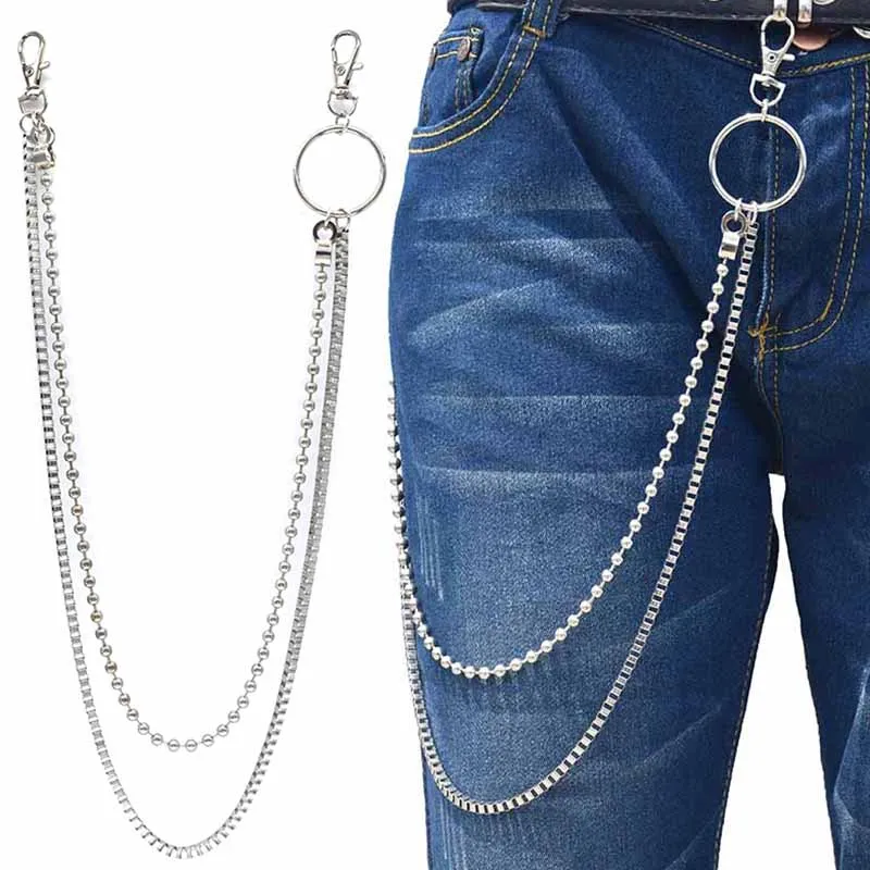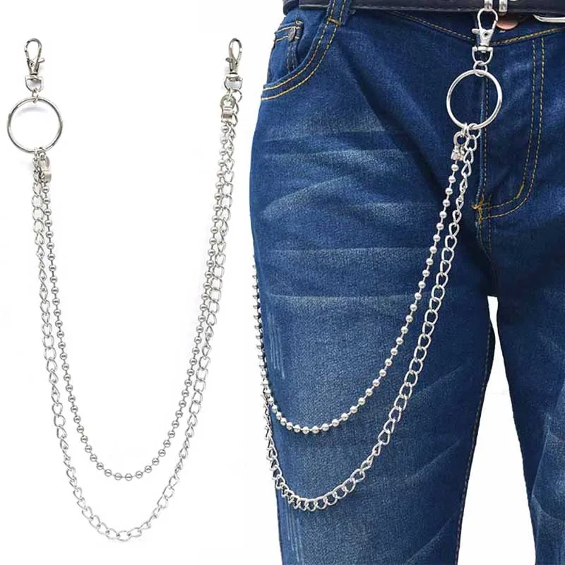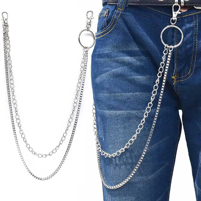 Панк Хип-Хоп Модный Пояс поясной брелок Многослойные мужские брюки цепочка на джинсы панк металлические большие кольца брюки брелки для мужчин и женщин ювелирные изделия