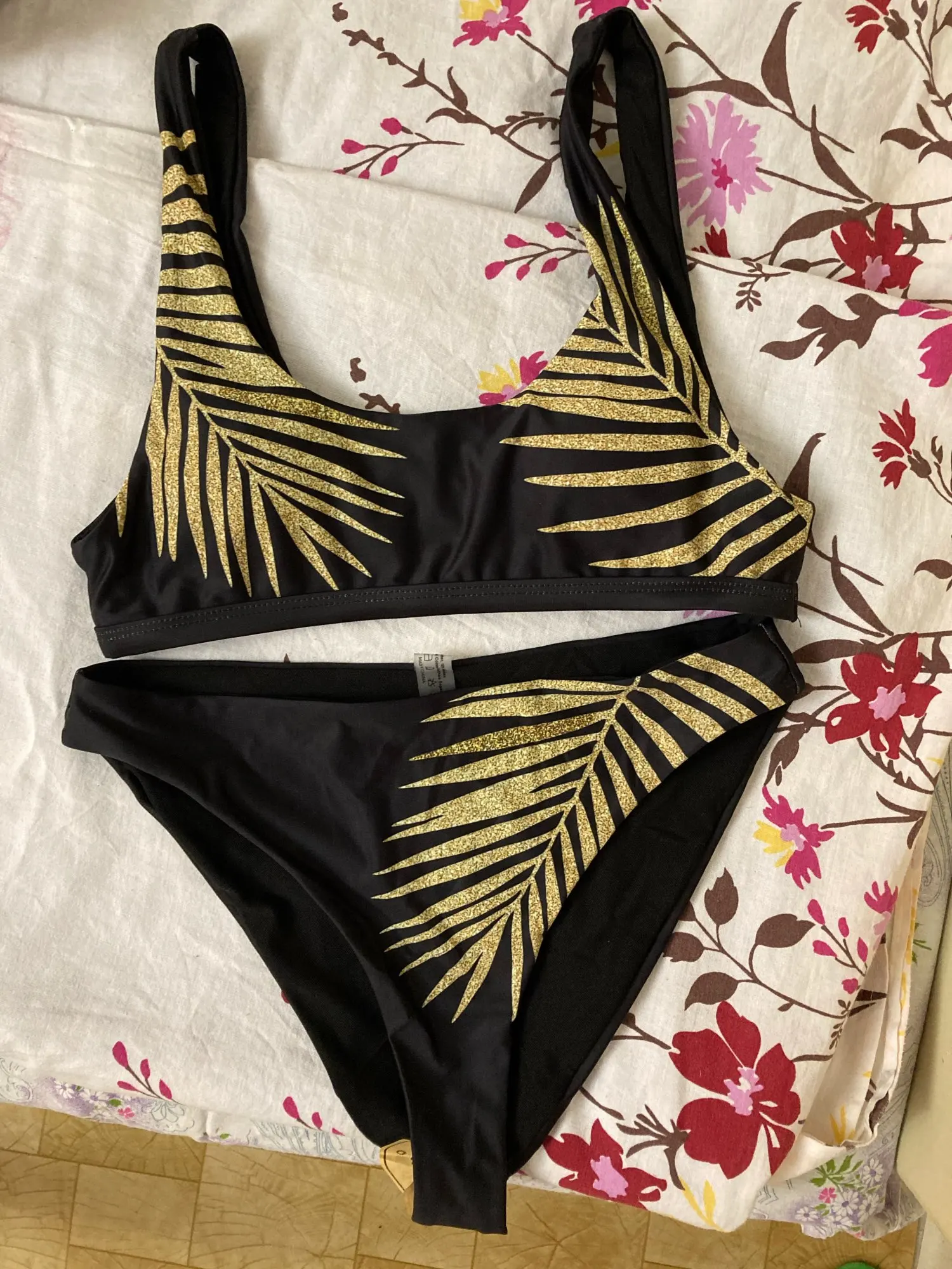 Хит! Просто потрясающе! Это бикини имеет очень красивый дизайн золотого цвета с изображением пальмы, что делает его привлекательным.