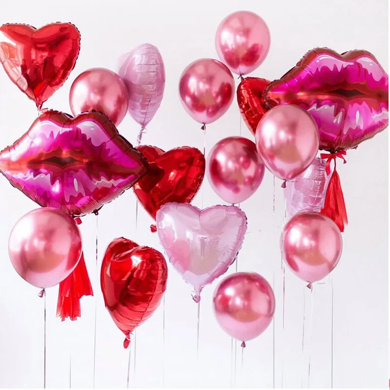 7 шт.лот, романтичный воздушный шар из фольги с красными губами, 18 дюймов, розовое сердце, гелиевый балаос, свадебные украшения на День святого Валентина, тема любви, вечерние принадлежности