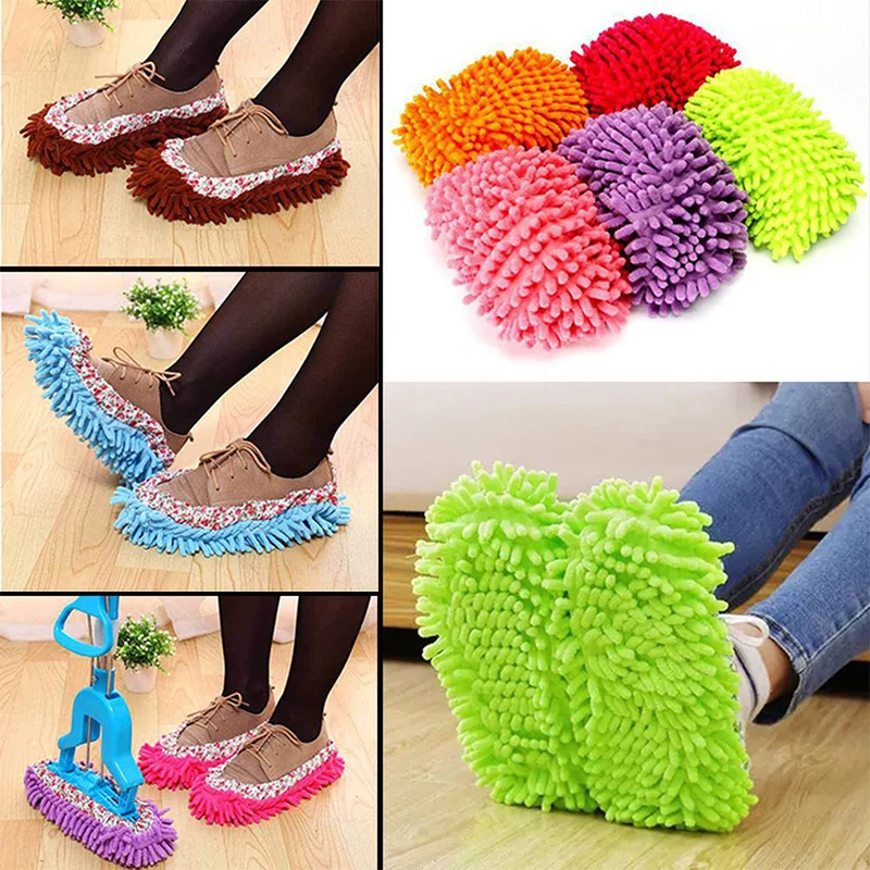 Шлепанцы для уборки пыли, тряпка из микрофибры для мытья пола в ванной, 1 пара