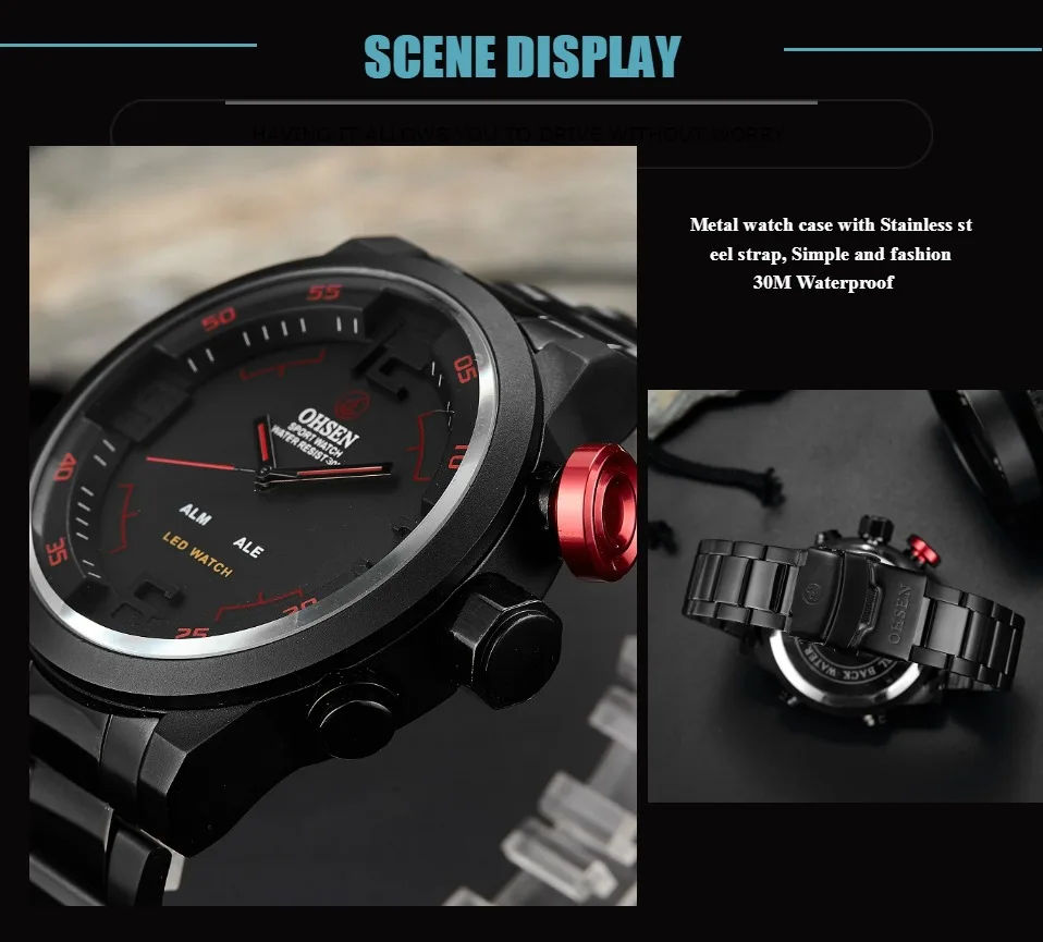 Прочный водонепроницаемый чехол для часов из сплаваЯпония Maxell кнопочная ячейка, длительный срок службыРемешок из нержавеющей сталиЗадняя крышка из нержавеющей стали с лазерным логотипом OHSEN