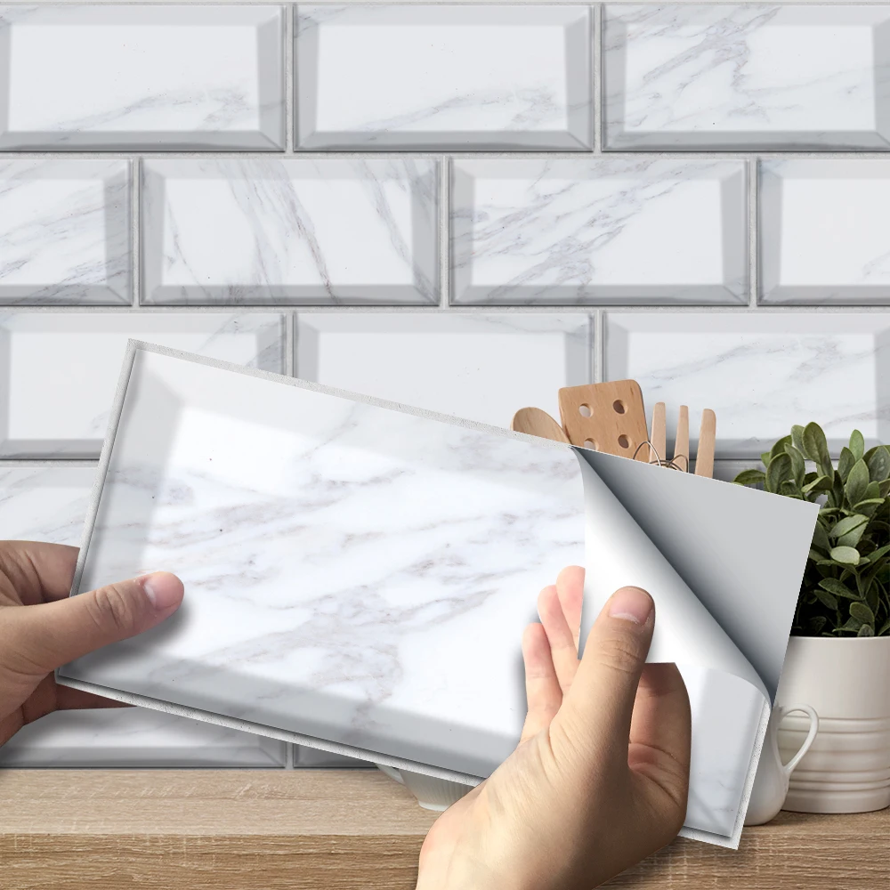 Белые мраморные настенные стикеры в стиле ретро маслостойкие водонепроницаемые плитки обои для кухни ванной комнаты напольное настенное украшение для дома