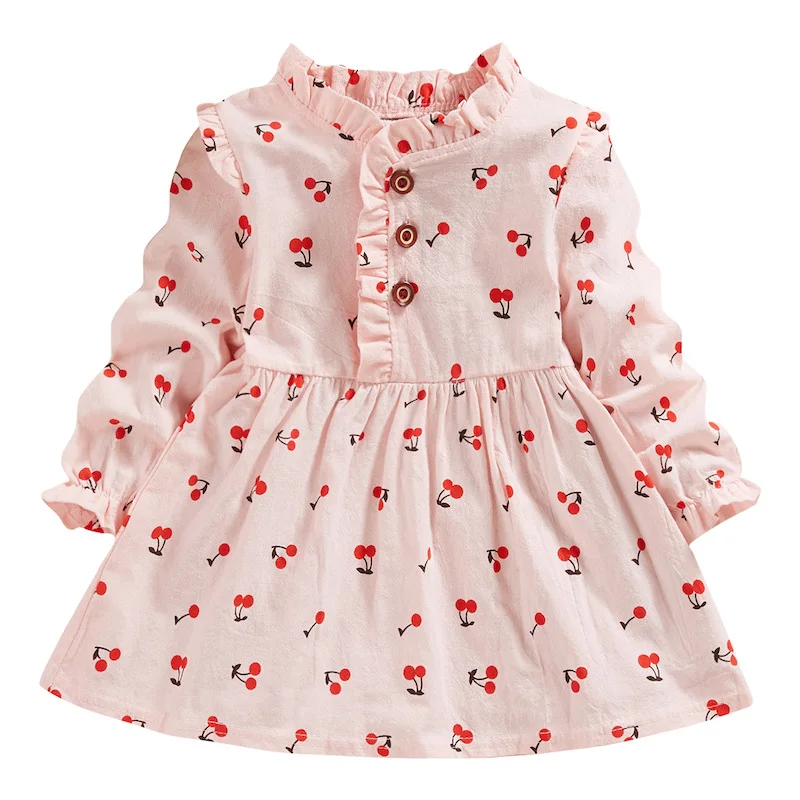 Осень платье для младенцев, однотонные платья с длинным рукавом и принтом вишни для маленьких девочек, одежда для новорожденных девочек, платье принцессы 4,91 долл. США5,99 долл. США