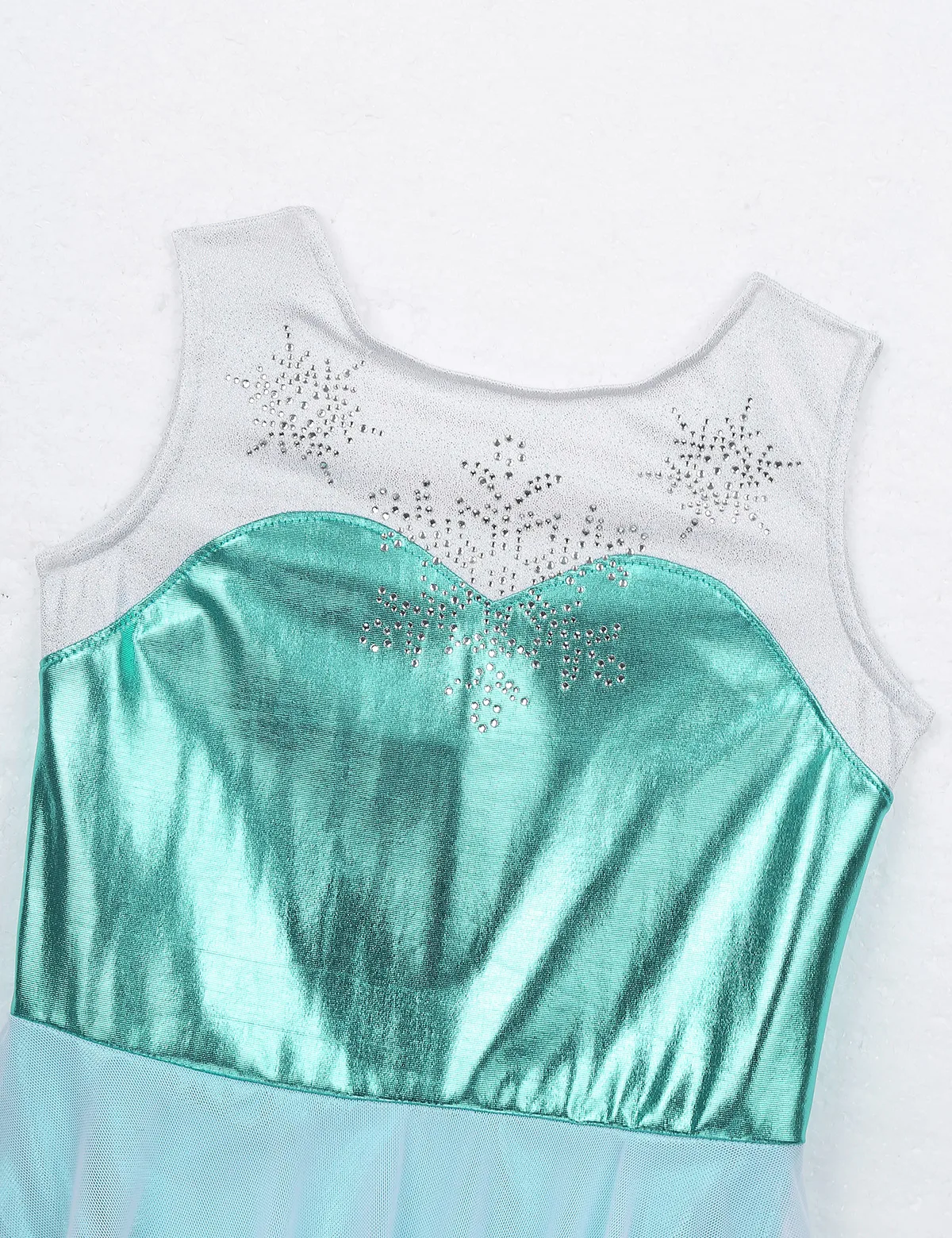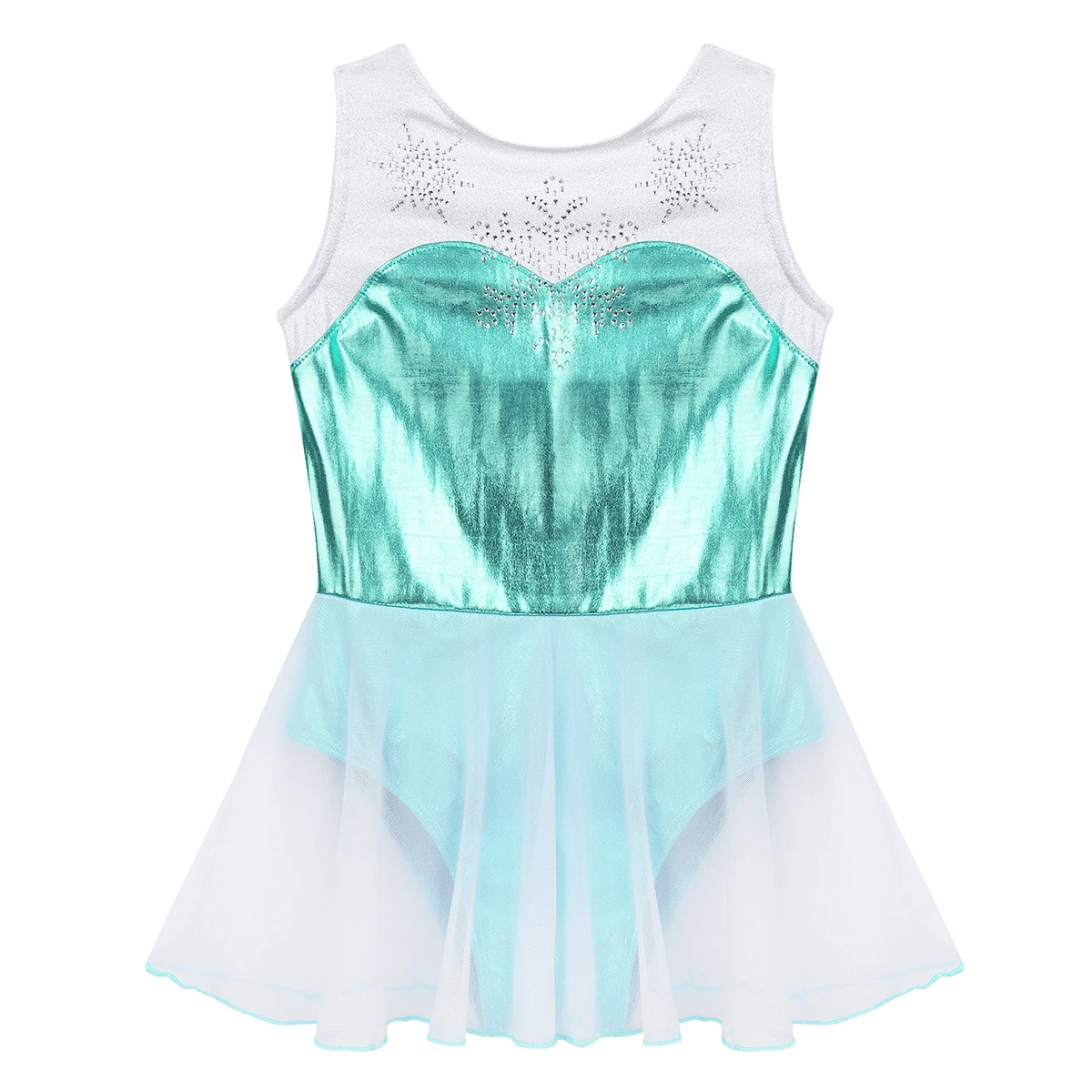 Платье без рукавов с круглым вырезом для девочек, Манишка спереди украшен блестящими Стразы в форме снежинок, металлический внешний вид.