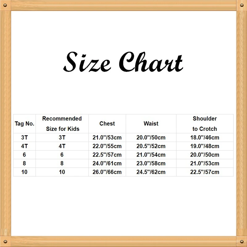 Размеры таблицей:Рекомендуемый возраст и рост указаны только для справки. Если под ваши замеры подходят два размера, мы рекомендуем выбрать больший размер.(Измерения, содержащиеся в таблице, относятся к товару, а не к телу.)