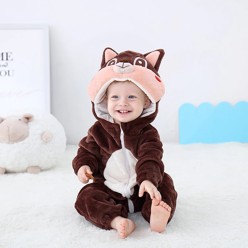 Для новорожденных ползунок комбинезон с милым изображением белки для маленьких девочек и мальчиков одежда Kigurumis, комбинезон Детский комбинезон теплый костюм От 0 до 2 лет