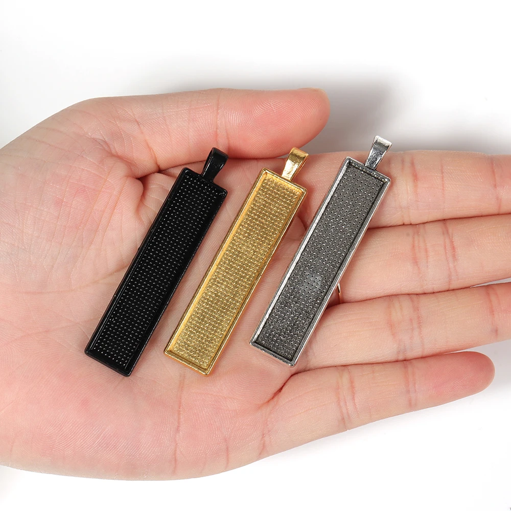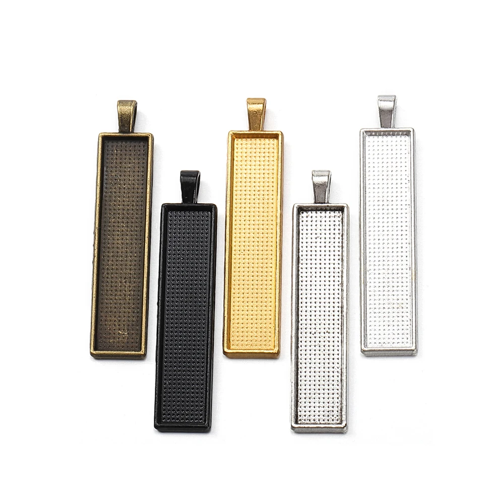 10 шт. металлический прямоугольник кулон пустой Кабошон ободок настройки подходит для 10x50мм камея стекло для DIY ожерелье брелки ювелирные изделия