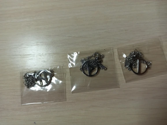 Всё как в описании, но цепочка настолько не крепкая, что одев её в первый раз, порвалась и потерялась. Так что фото нет, фотографировать нечего.