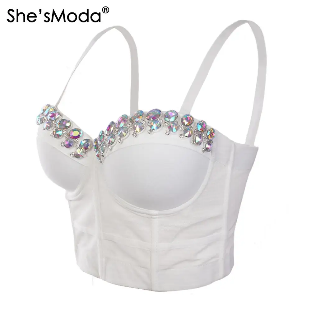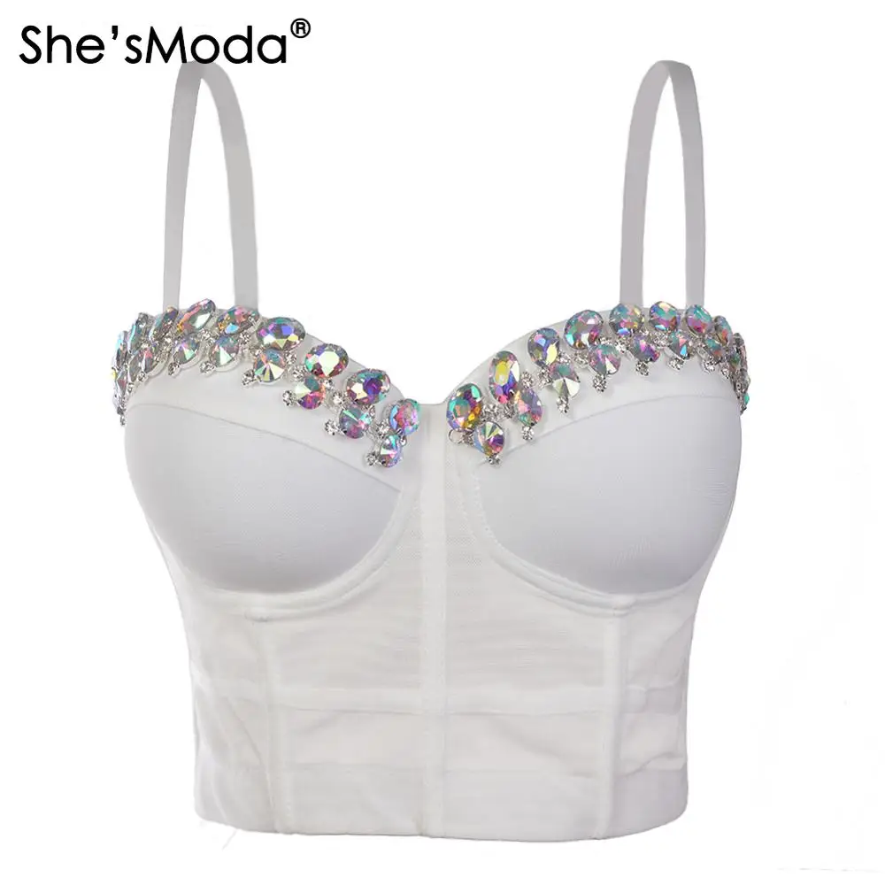 She'sModa новые сетчатые перспективные Стразы бюстье женский Бралетт укороченный Топ жилет размера плюс