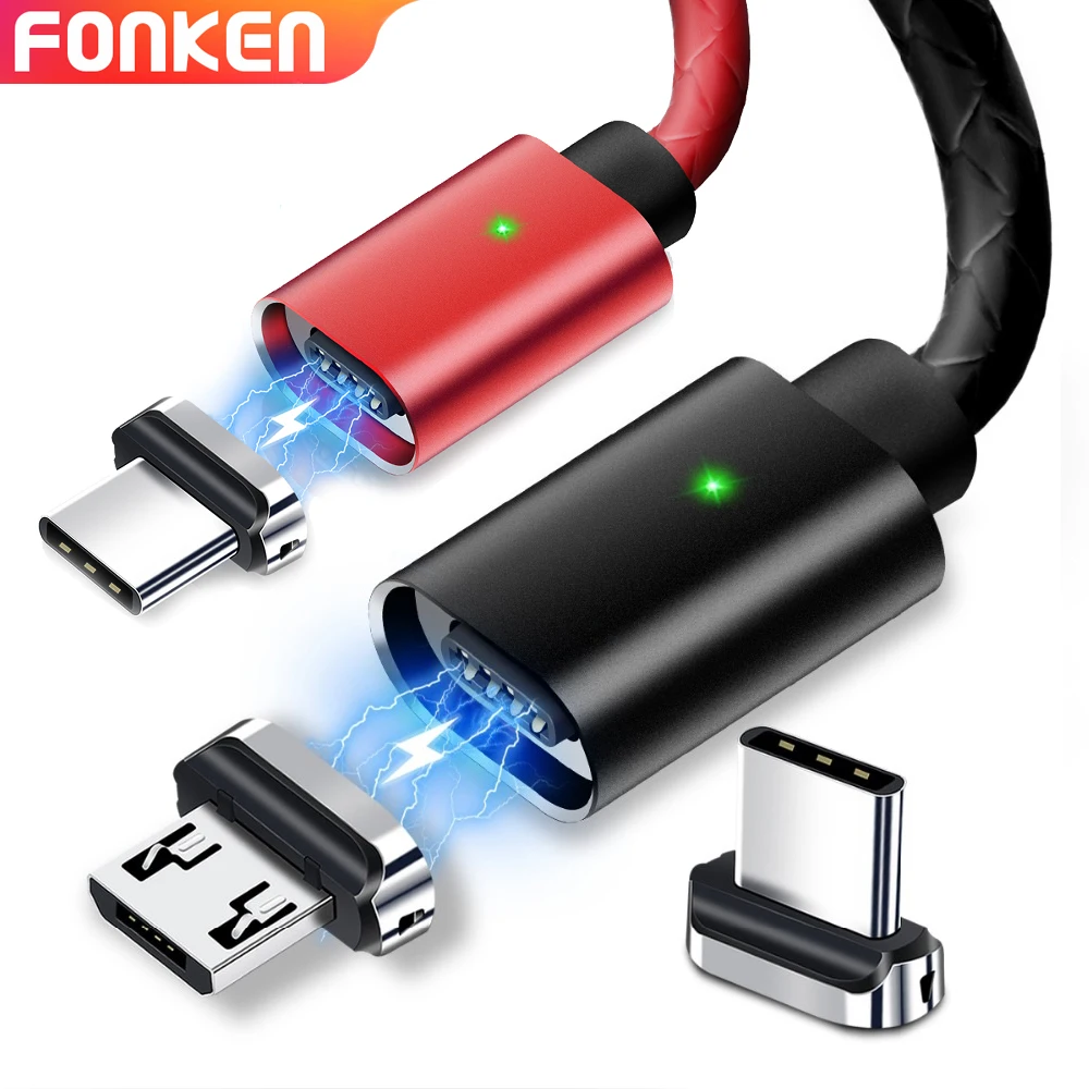 Магнитный кабель FONKEN USB C, кабель Micro USB, быстрая зарядка для iphone 3A, 2 м, быстрое зарядное устройство для мобильного телефона, магнитный шнур, провода для передачи данных Android