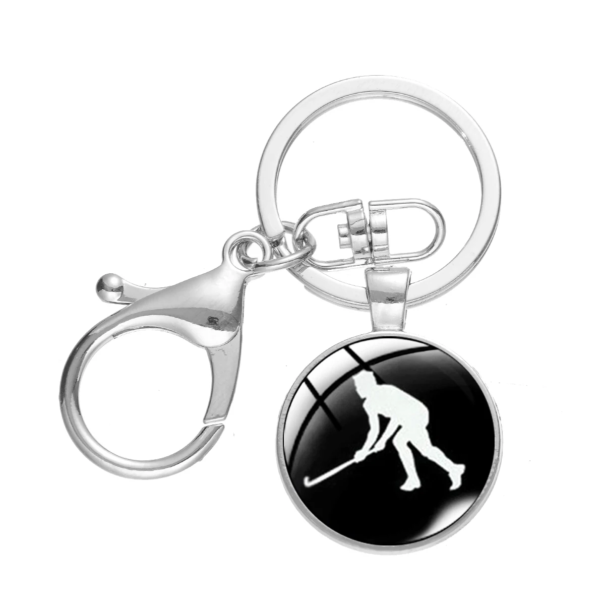SONGDA креативный спортивный брелок для хоккея на поле, ручная работа, стеклянный художественный силуэт, Круглый Кулон, карабин, пряжка, брелок, кольцо, безделушки