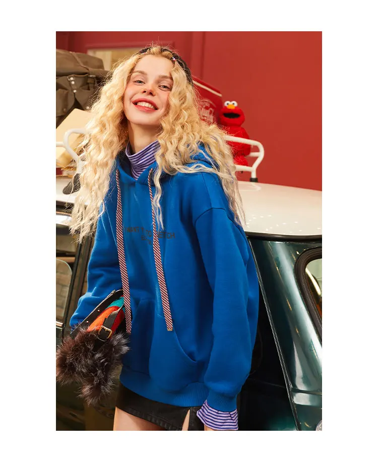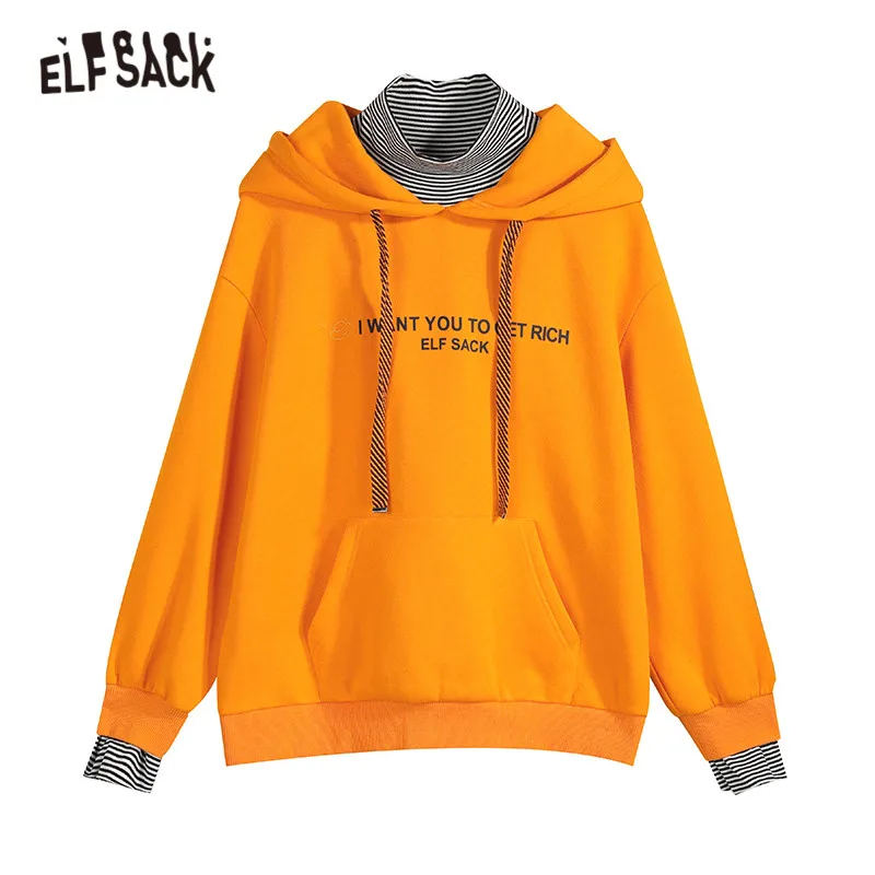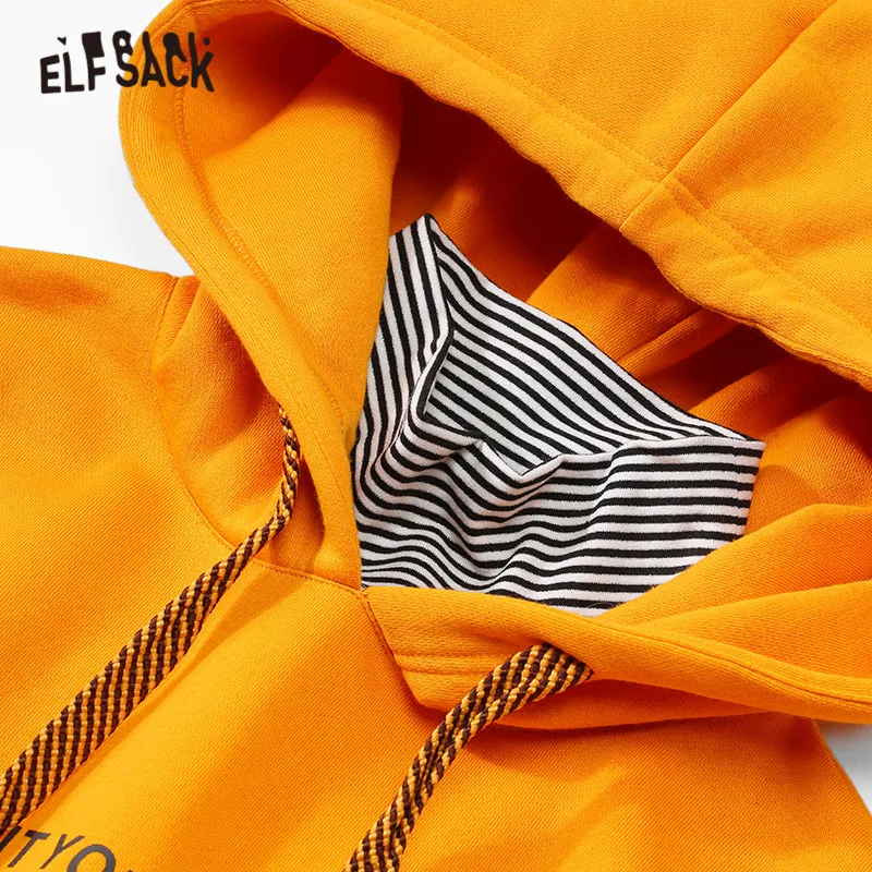 Женская толстовка ELFSACK, синяя однотонная Толстовка в полоску с буквенным принтом, с капюшоном, на зиму, 2020