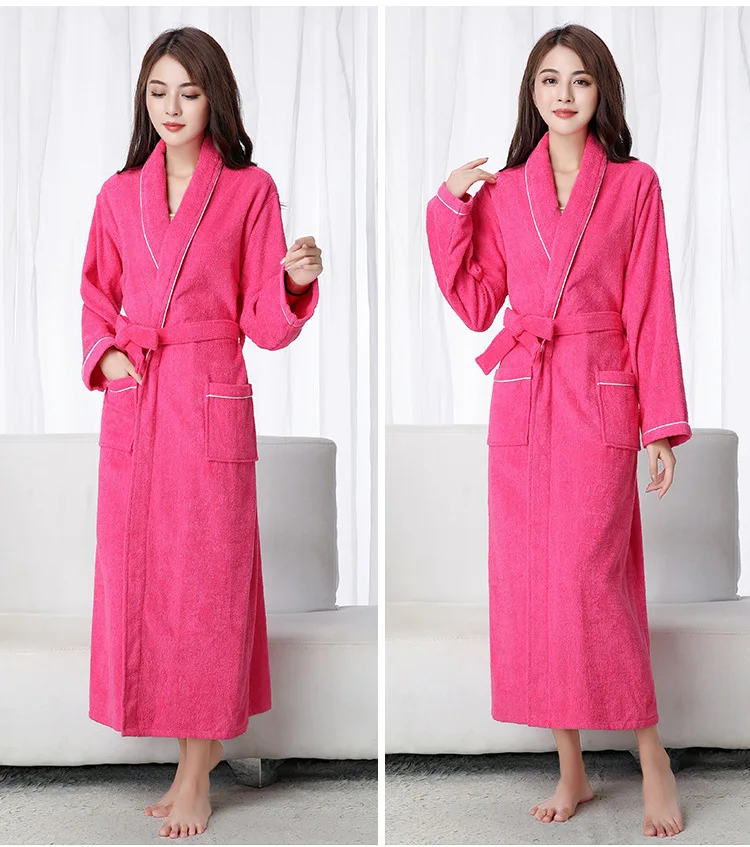 100% хлопчатая ткань для полотенец, махровый удлиненный халат для влюбленных, мягкий банные мужские халаты, ночная сорочка, мужская повседневная домашний банный Халат