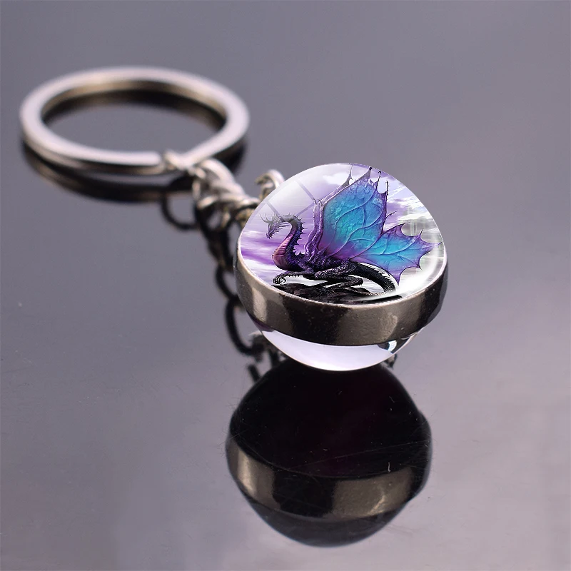 Брелок с подвеской в виде синего дракона со стеклянным шаром, крылья, дракон, ювелирные изделия в стиле стимпанк, брелок со злым драконом для мужчин и женщин, рождественский подарок