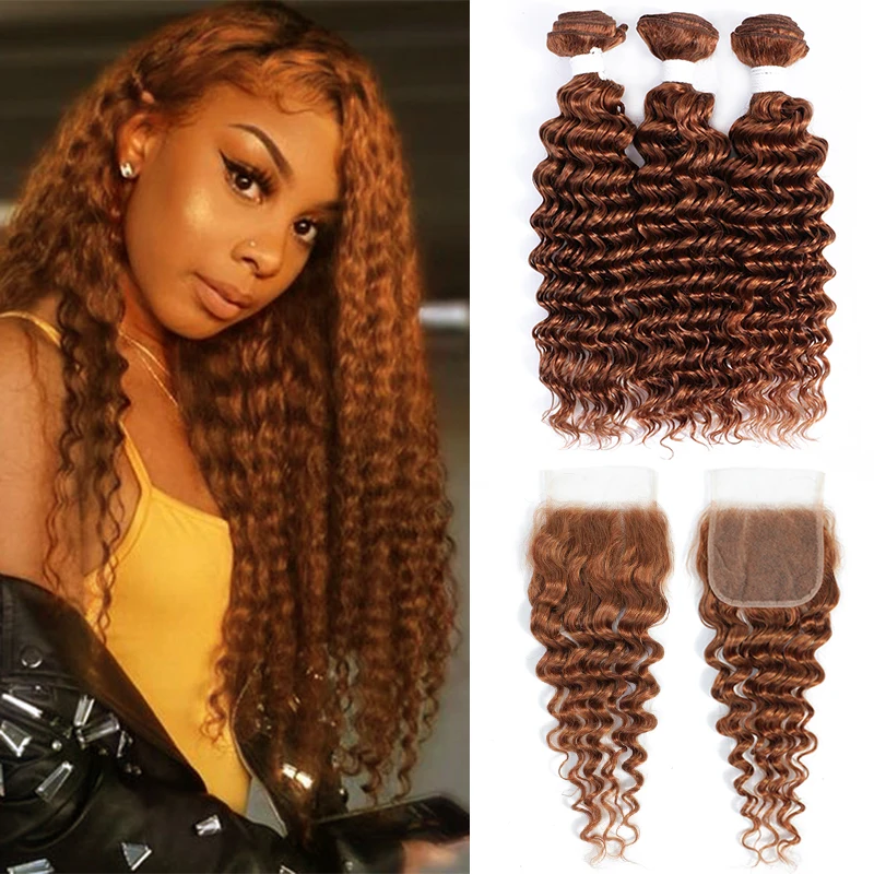 4 шт. человеческие волосы в пучке с закрытием коричневый Auburn бра...