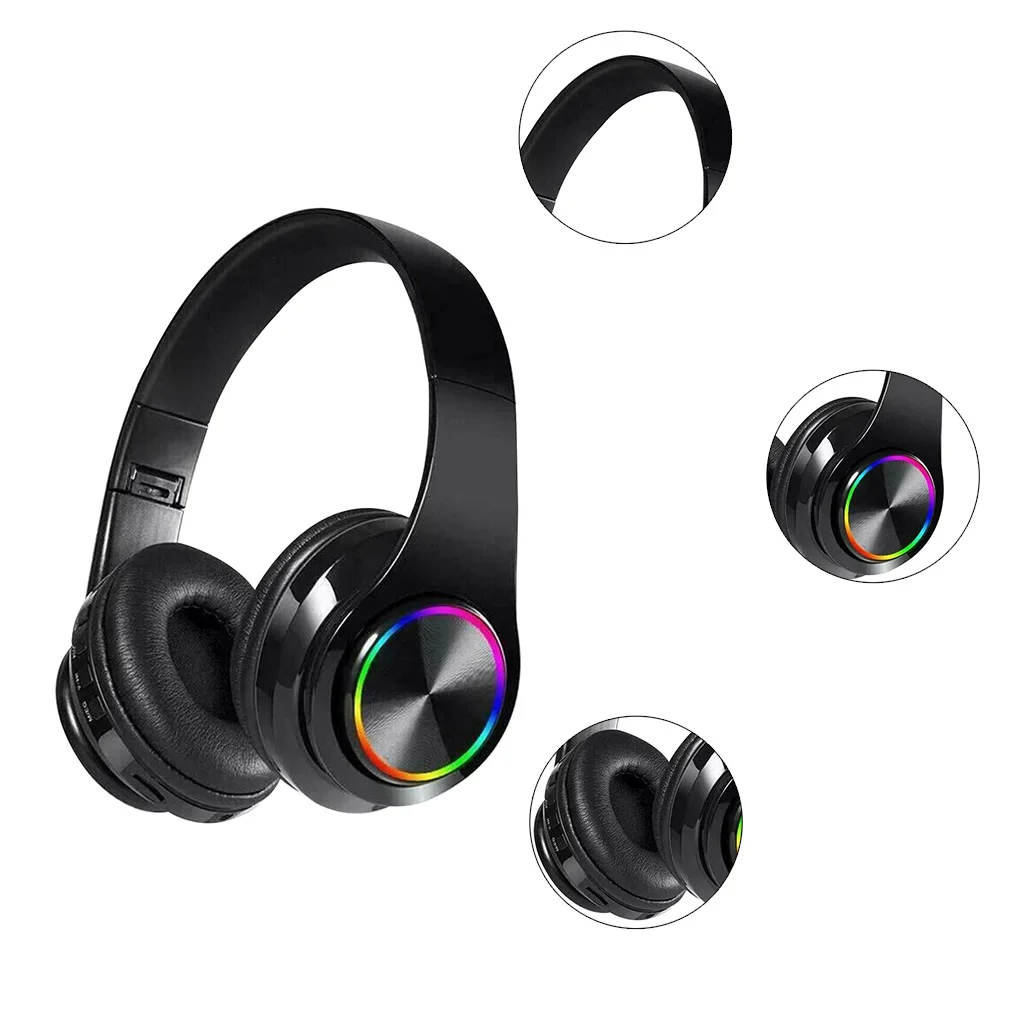 Цветной СВЕТОДИОДНЫЙ светильник s: семицветный преобразующий крутой дышащий светильник, который поможет вам быть более очаровательным.Наушники имеют различные варианты прослушивания. Со встроенным слотом для tf-карты вы можете использовать карта TF / Micro SD с загруженной MP3 музыкой и слушать песню непосредственно на гарнитуре.Разработан с чипсетом CSR Bluetooth 5,0 для более низкого энергопотребления и более высокой совместимости.Совместимость со всеми телефонами, планшетами, ноутбуками, любые устройства с поддержкой Bluetooth или устройства с 3,5 мм гнездом для наушников.Встроенный микрофон: поддерживает звонки без рук и голосовой отчет о вызывающем абоненте. Благодаря последним усовершенствованиям ваш голос становится более четким в шумной среде.40 мм динамик с диафрагмой драйвера, высокое качество звука стерео, наслаждайтесь беспроводной музыкой высокого качества.Мягкие кожаные амбушюры и выдвижная повязка уменьшают нагрузку на уши. Не чувствую себя некомфортно при ношении в течение длительного времени.Эргономичный дизайн, имитирующий мягкие наушники на основе текстуры кожи человека для обеспечения прочного комфорта.