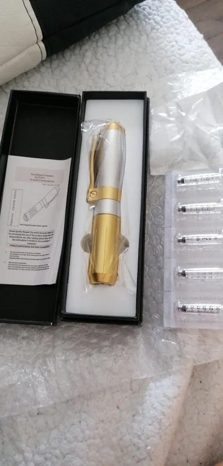 Спецификация: Тип изделия: гиалуроновая ручка Цвет: как на картинке Материал: нержавеющая сталь Количество Одиночная впрыска: 0,05-0,5 мл (5-50IU) Время использования: 2000 раз Глубина впрыска: 4-6 мм Размеры: 0,3 мл/0,5 мл Объем: 0,01 мл ~ 0,12 мл (минимальный масштаб 1 рамка 0,01 мл, в том случае, если вы хотите, чтобы играть в 0,05, затем вниз 5 кадров, максимум 12 кадров-0,12 мл, самый большой масштаб 0,5 мл) Характеристика: 1. Без иглы: Многие люди страдали от игольчатой фобии. Наша технология без игл облегчает игольную фобию без игл. 2. Практически без боли: Быстрая инъекция менее 1/3 секунды, микро отверстие и автоматическое пружинное давление делают инъекции с «серой» практически безболезненными 3. Быстро, легко и безопасно: Он может быть использован пациентами для самостоятельной инъекции, или другие лица могут вводить инъекции назначенного лекарства. 4. Нет риска травм игольчатой палки: Он устраняет повреждения игольчатой палки, так же как и без игл, тем самым снижая затраты на удаление, устраняет перекрестное загрязнение 5. Сопло и адаптер стерилизованы гамма-облучением: Они одноразовые, что исключает возможность перекрестного загрязнения. 6. Длительный срок службы и низкое техническое обслуживание: Используется для более чем 10000 инъекций, и Он управляется самоприводной пружиной.