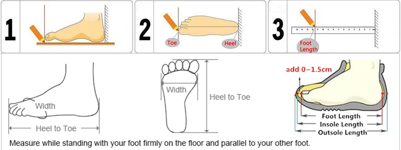Перед заказом, пожалуйста, Измерьте длину вашей стопы и выберите правильный размер. Это очень важно! 1. См. Изображение, чтобы измерить длину вашей стопы. 2. Пожалуйста, не измеряйте длину стельки, это не длина стопы. 3. Выберите правильный размер в соответствии с нашей таблицей размеров.