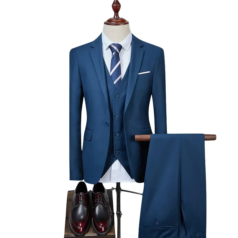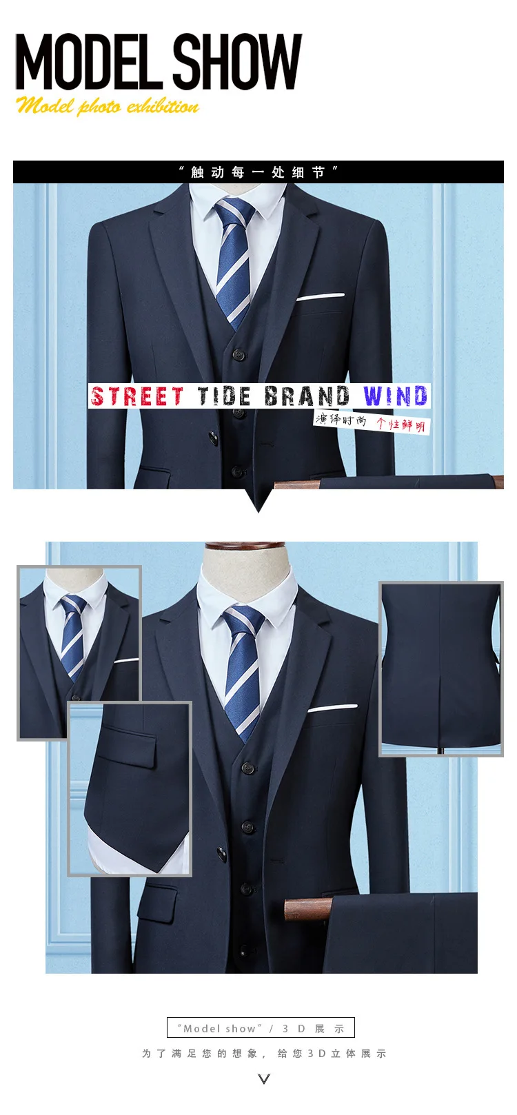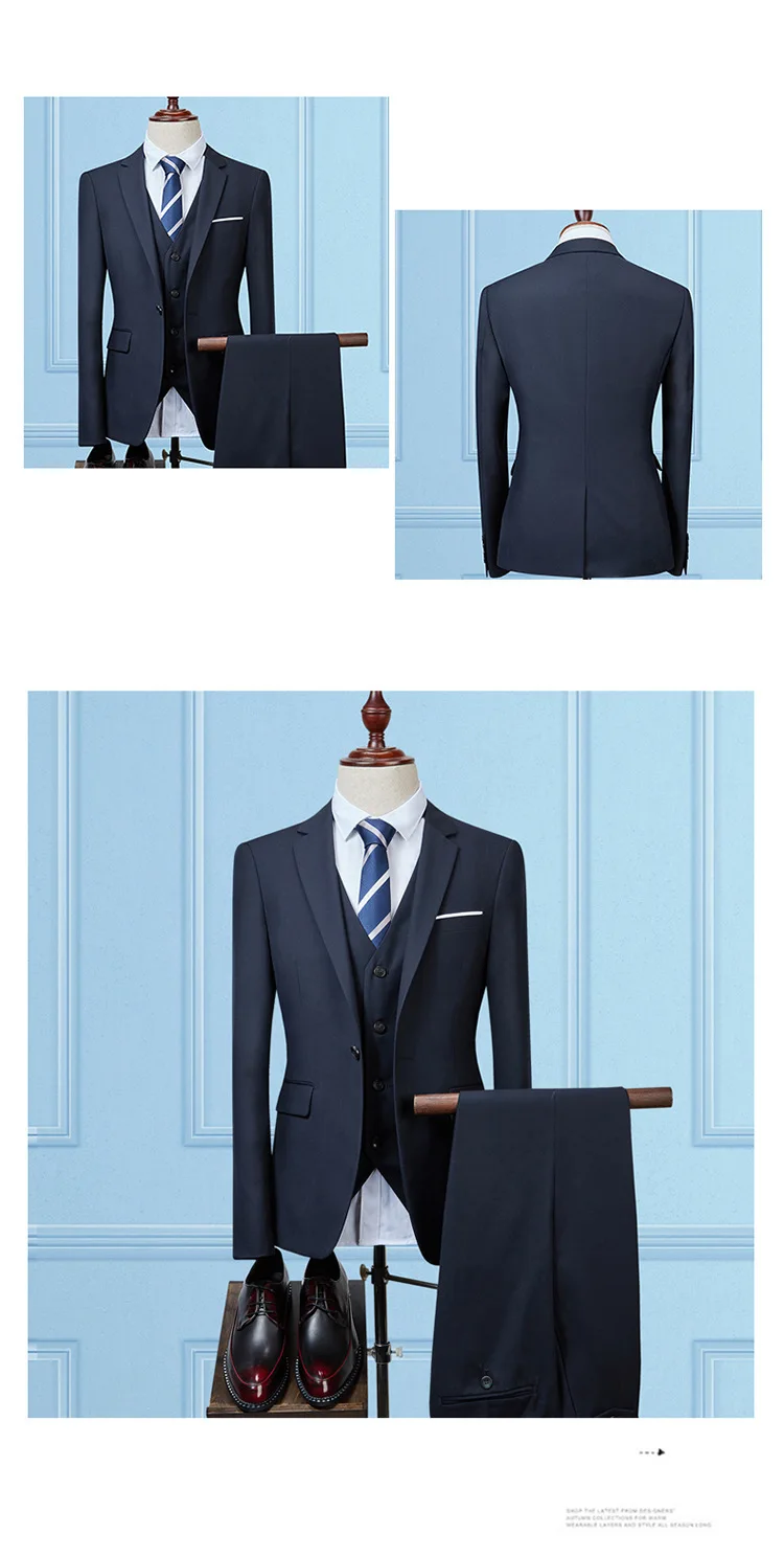 Мужские свадебные костюмы для выпускного на 1 пуговице, облегающий костюм из 3 предметов, блейзер, официальный деловой синий смокинговый костюм для мужчин, женский костюм