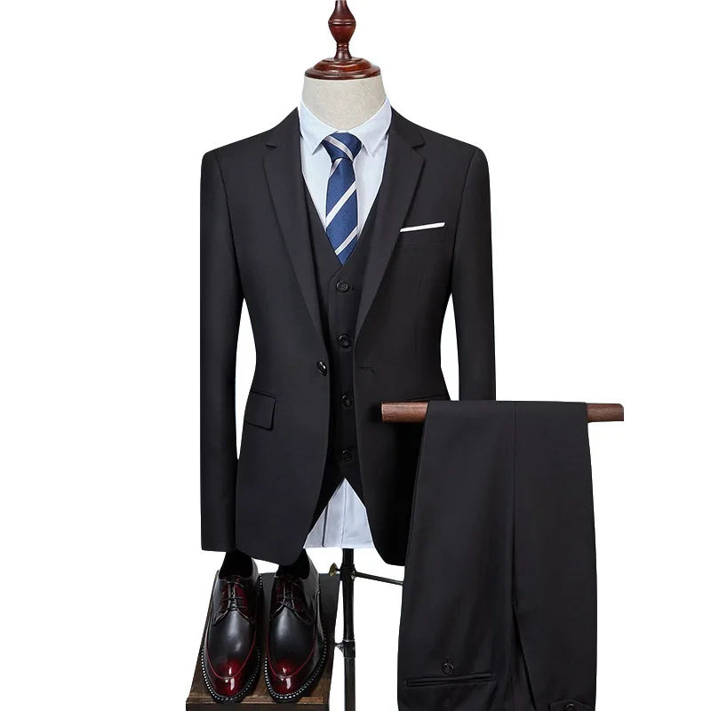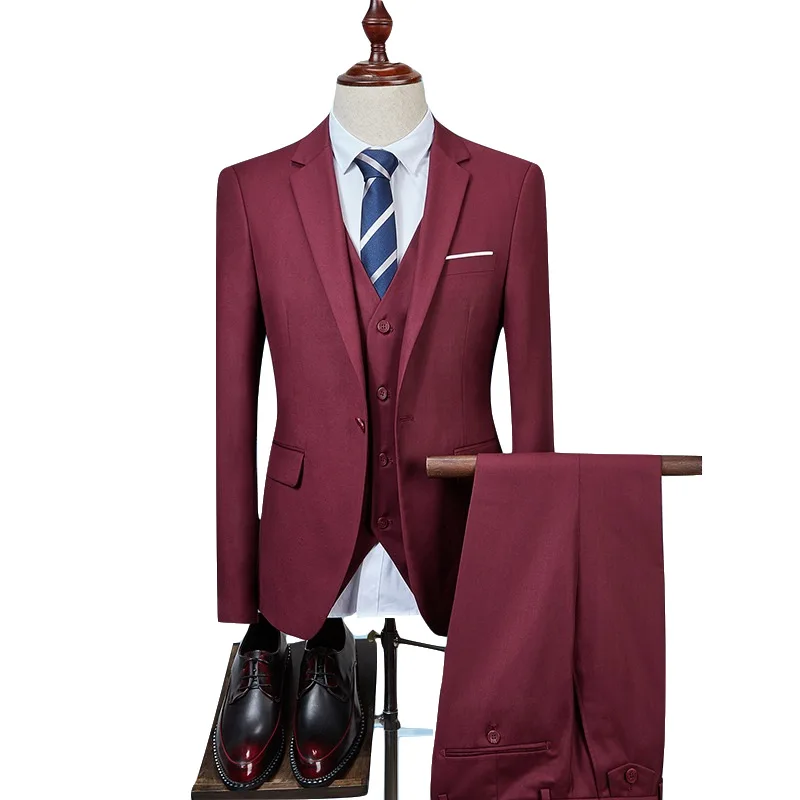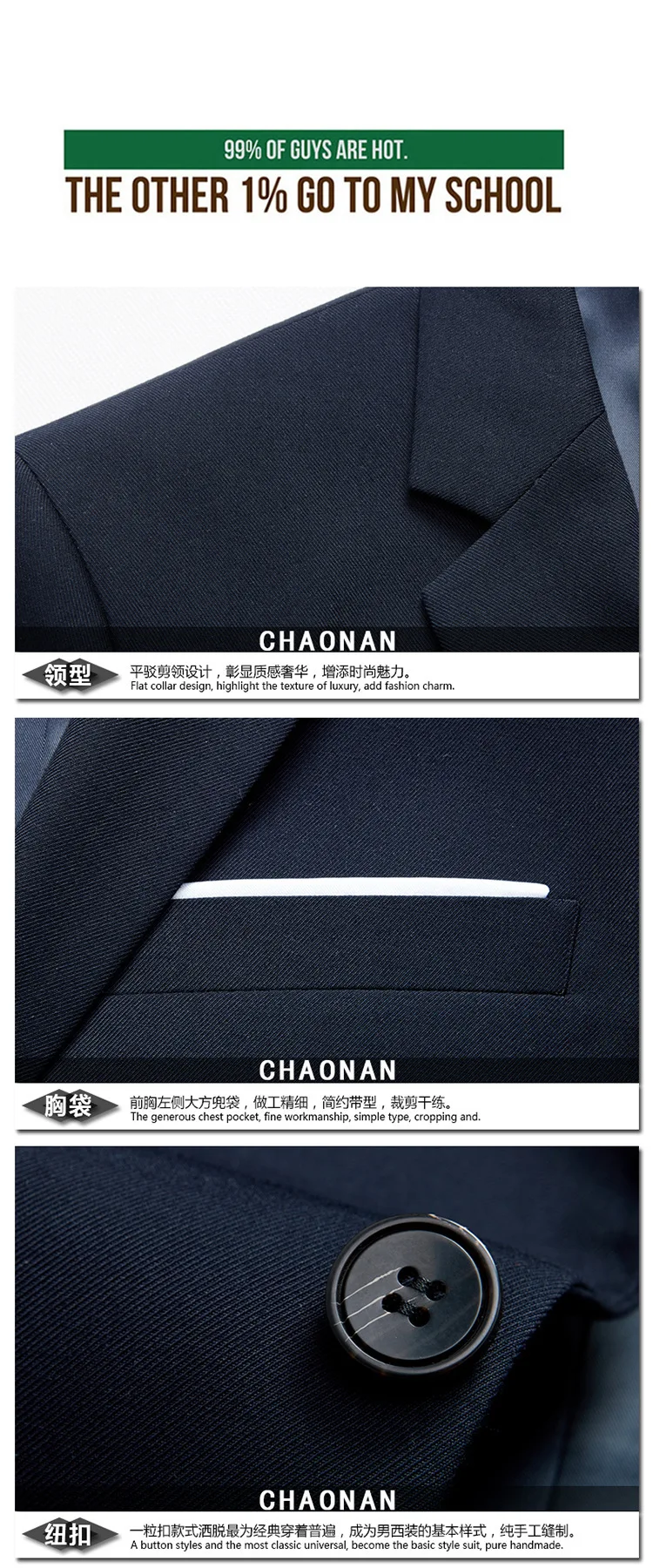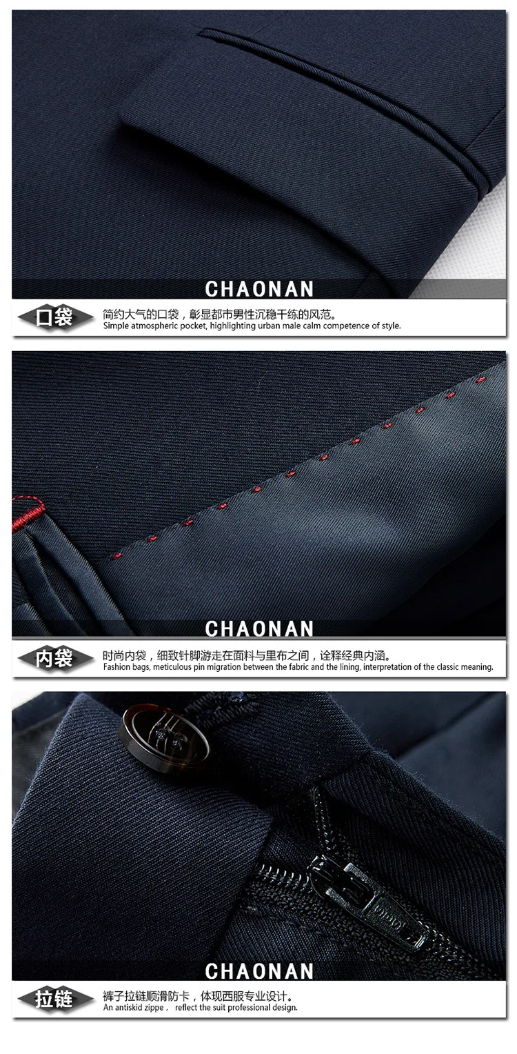Мужские свадебные костюмы для выпускного на 1 пуговице, облегающий костюм из 3 предметов, блейзер, официальный деловой синий смокинговый костюм для мужчин, женский костюм