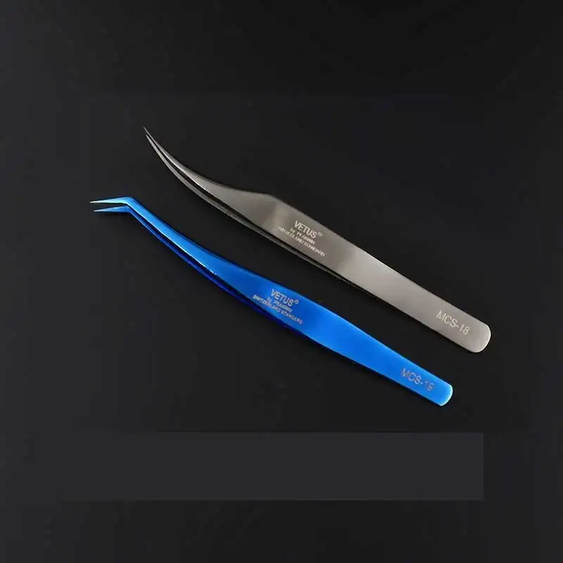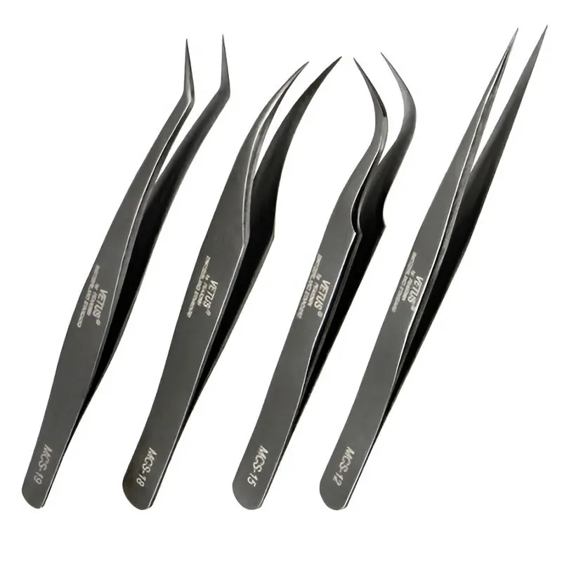 Пинцет VETUS из нержавеющей стали для наращивания ресниц, Антистати...