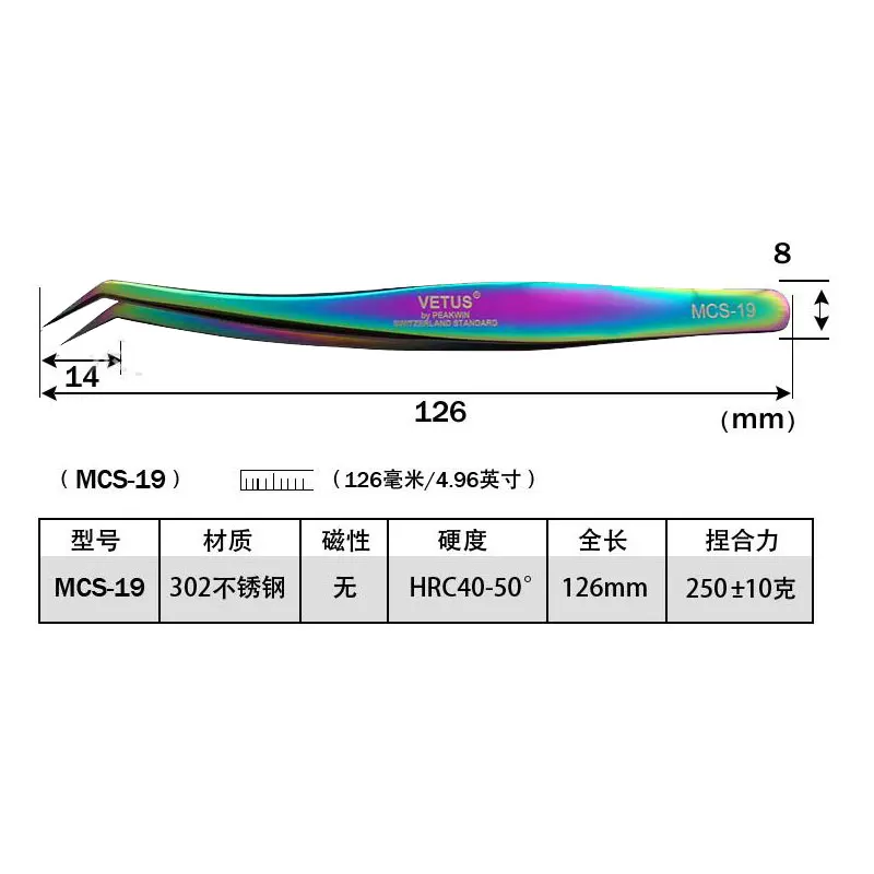 Пинцет для бровей VETUS MCS серии Rainbow для увеличения объема рес...