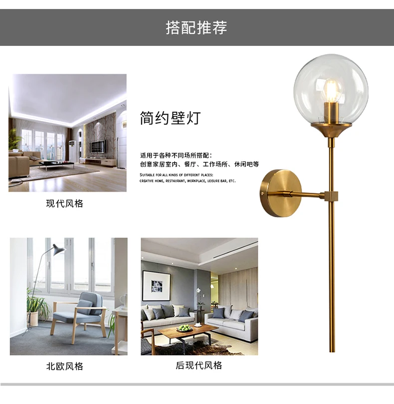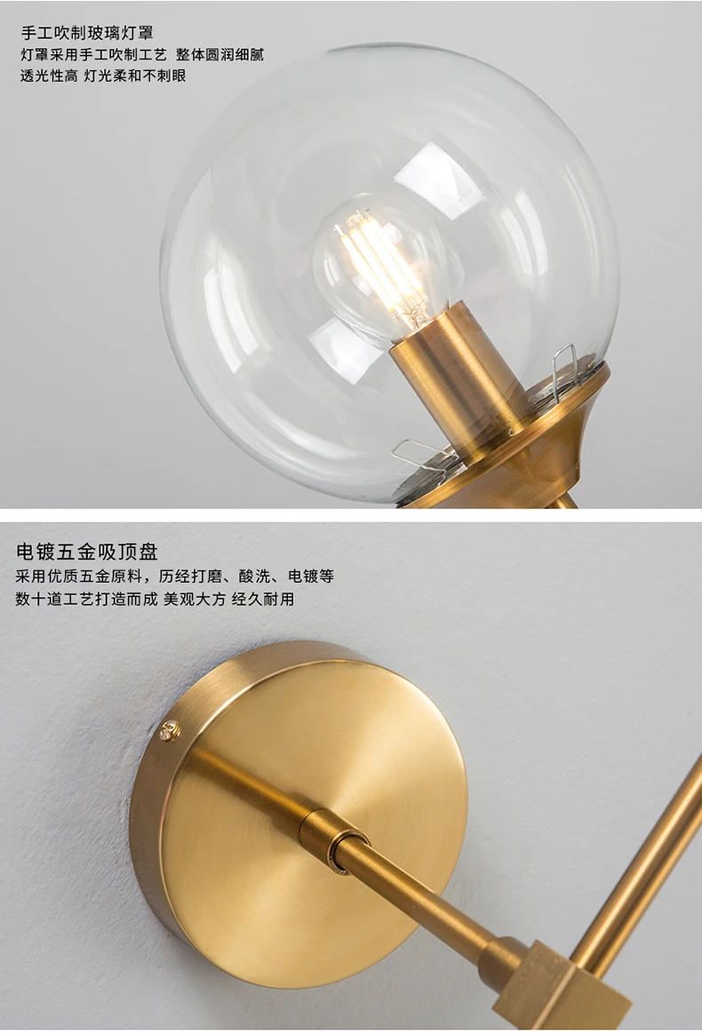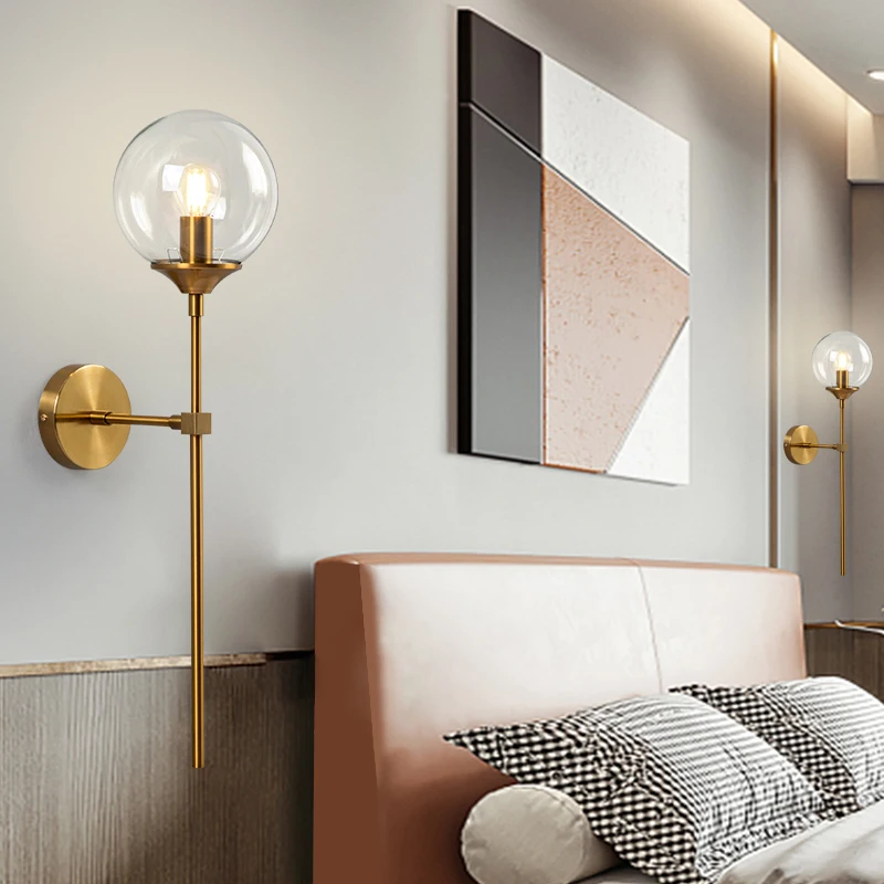 Современный стеклянный шар Эдисона настенный светильник Nordic Gold...